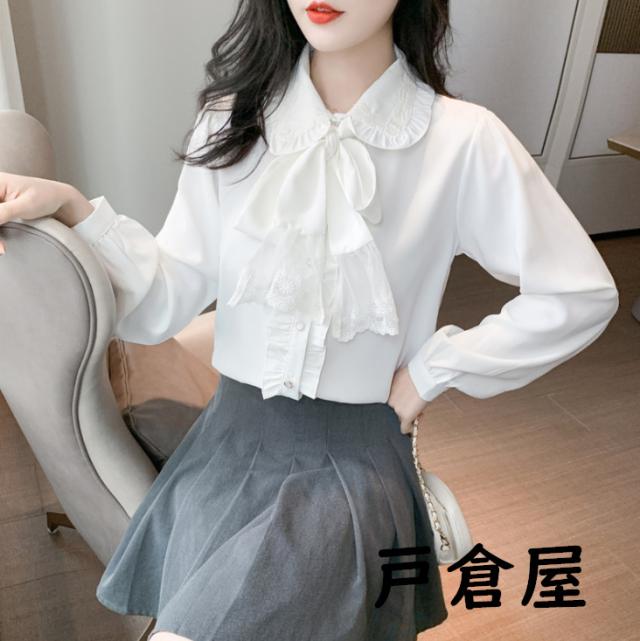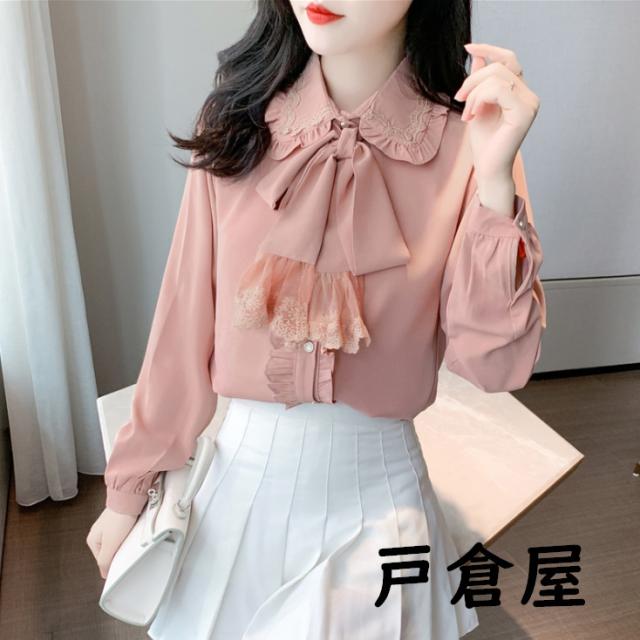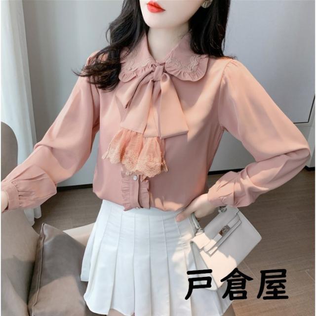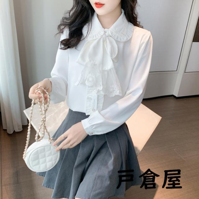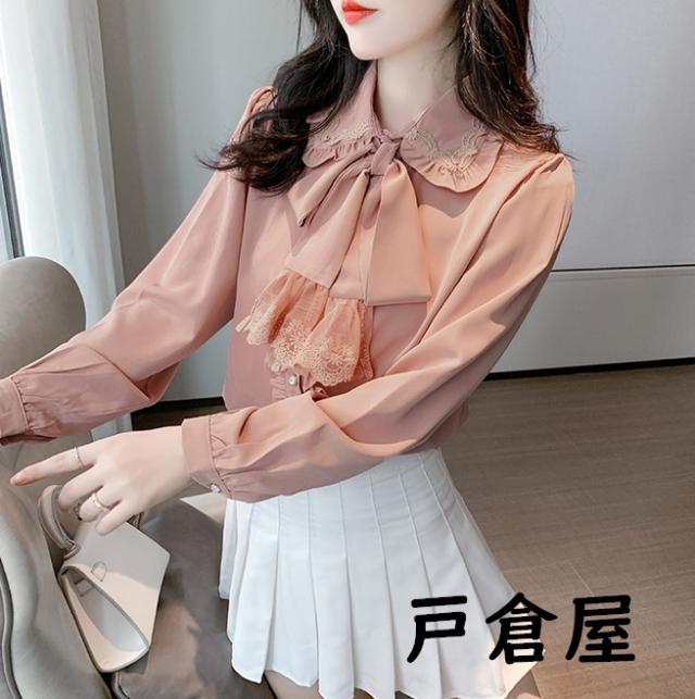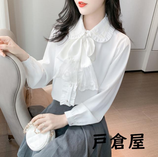 2021新品 リボンタイ付き ブラウス レディース トップス 長袖 サテン ブラウス ボウタイ付き 無地 ビジネスシャツ