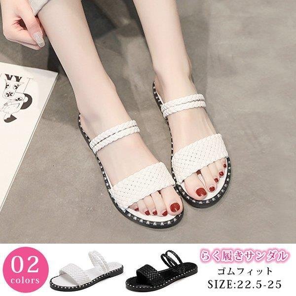 サンダル ミュール 2way 編みアッパー ローヒール きれいめ レディース 歩きやすい 履きやすい 痛くない 疲れない 疲れにくい 軽量 軽い