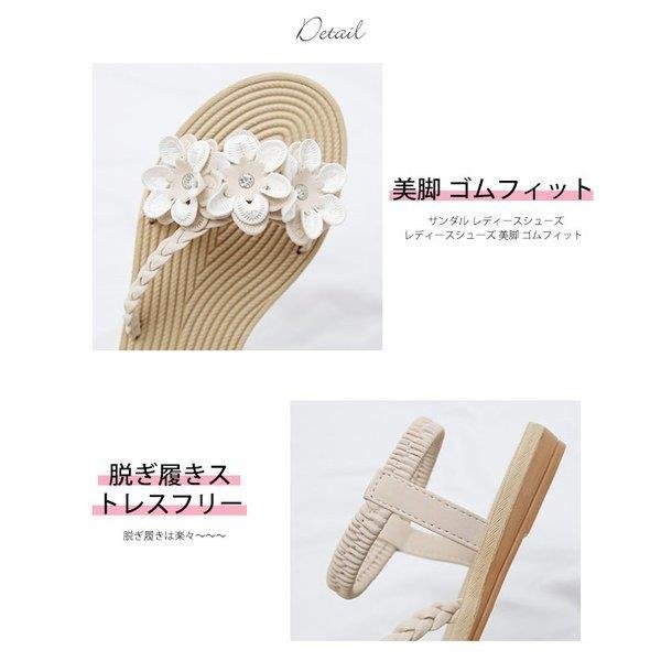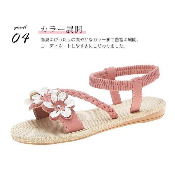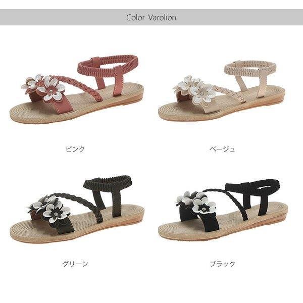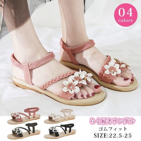 サンダル レディース ローヒール ゴムストラップ 編みベルト 花飾り おしゃれ 夏 歩きやすい 履きやすい 痛くない 疲れない 疲れにくい 軽量 軽い