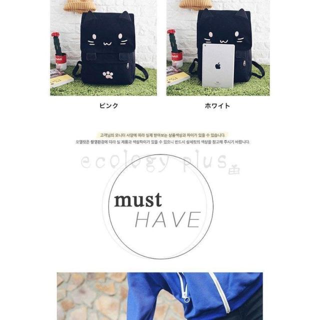 リュックサック レディース かわいい ねこリュック 猫 おもしろ 猫耳 ねこ ネコ 大容量 A4 通学 高校生 女子 中学生 大人 韓国 キャンバス バッグ