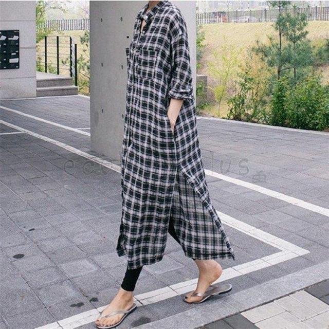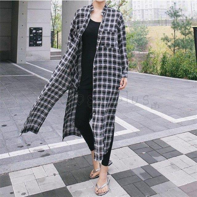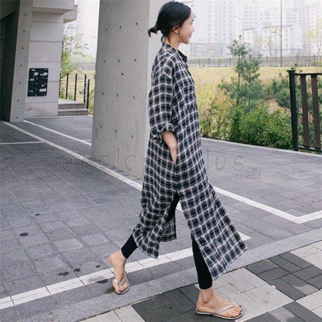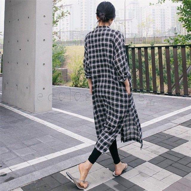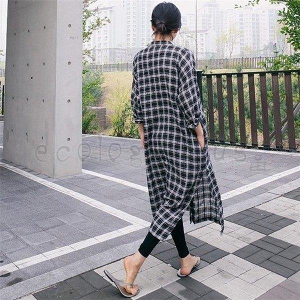 ロングシャツ レディース シャツワンピース ロング丈 チェック柄 シャツ カーディガン 前開き カジュアル ゆったり オシャレ 体型カバー ウター 羽織 春 夏