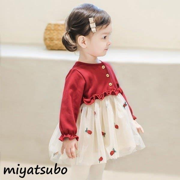 子供 ワンピース フォーマル パイナップル柄 韓国子供服 子供服 ベビー服 女の子 可愛い レッド イエロー 上品 ベーシック 秋 春 冬 70cn/80cm/90cm/100cm