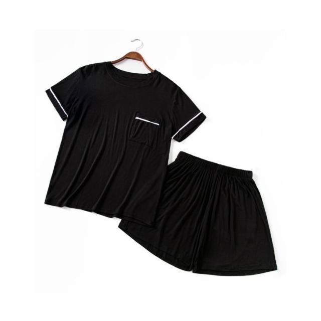 パジャマ ルームウェア レディース 春夏 半袖 パジャマ 綿 ルームウェア 大きいサイズ ショットパンツ 黒 上下セット 可愛い パジャマ 女性 部屋着 寝間着