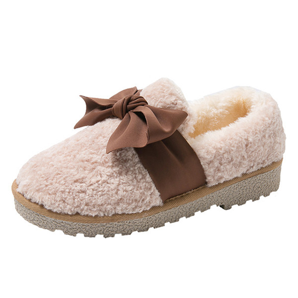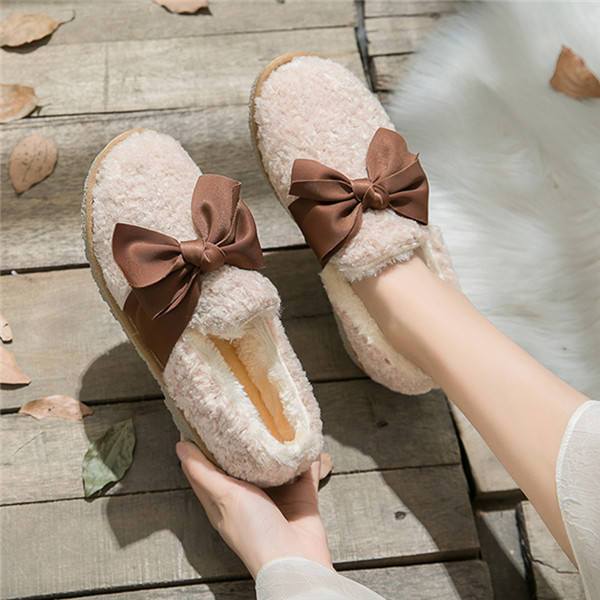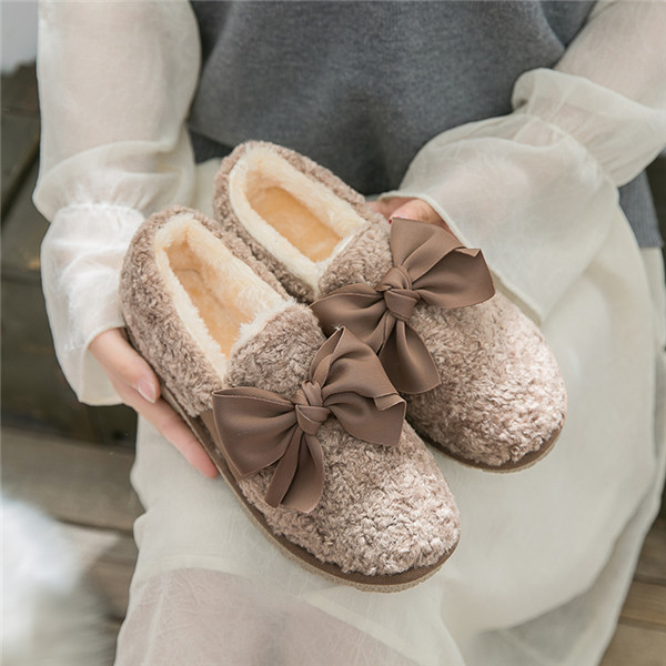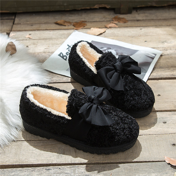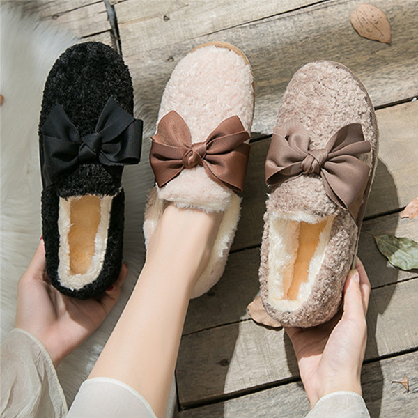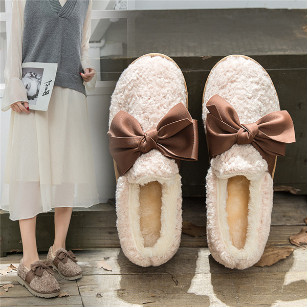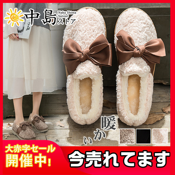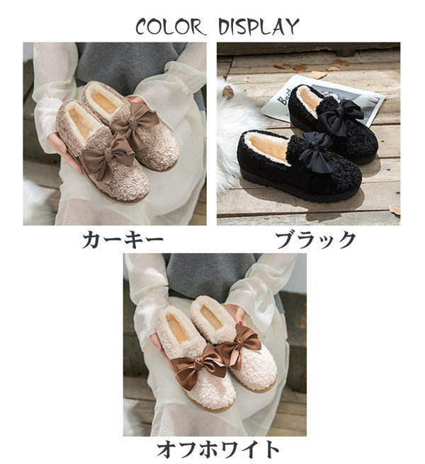 ボアパンプス パンプス 裏起毛 もこもこ リボン ぺたんこ ファーシューズ レディース モカシンシューズ スリッポン ふわふわ ローカット シューズ