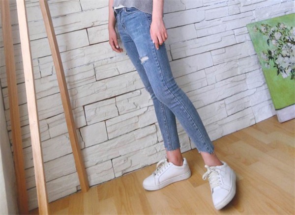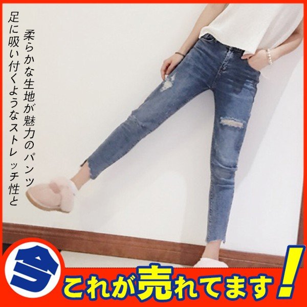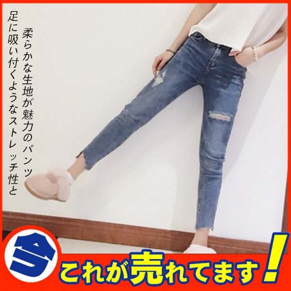 スキニーパンツ デニムパンツ ストレッチ 着やせ 裾フリンジ クラッシュ おしゃれ スキニー ジーンズ 無地 不規則裾 ダメージ加工