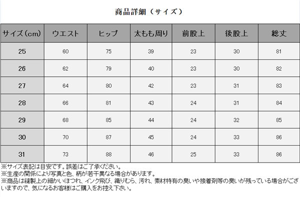 | サイズについての説明 | サイズ:/25/26/27/28/29/30/31 |