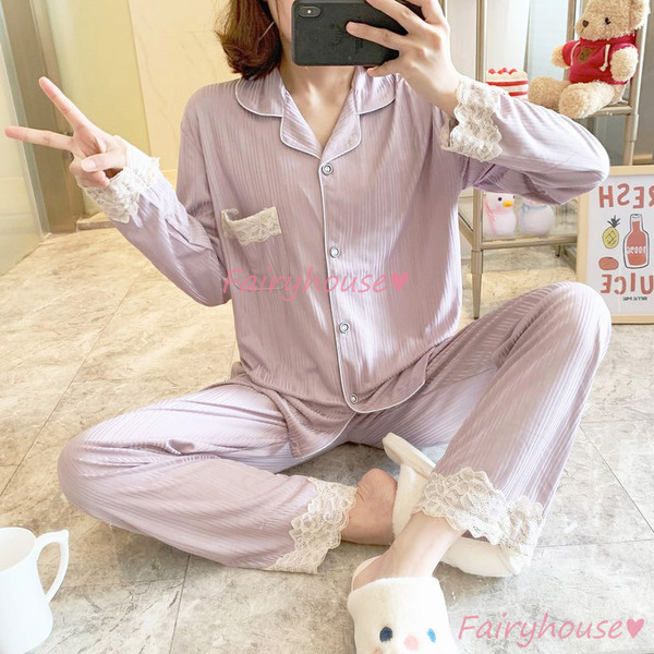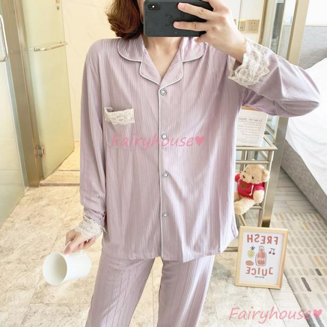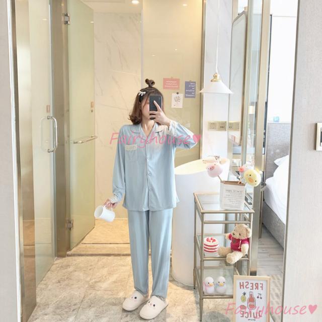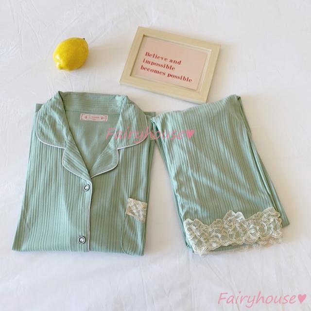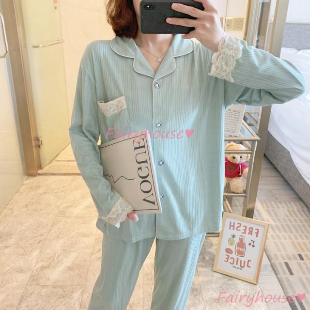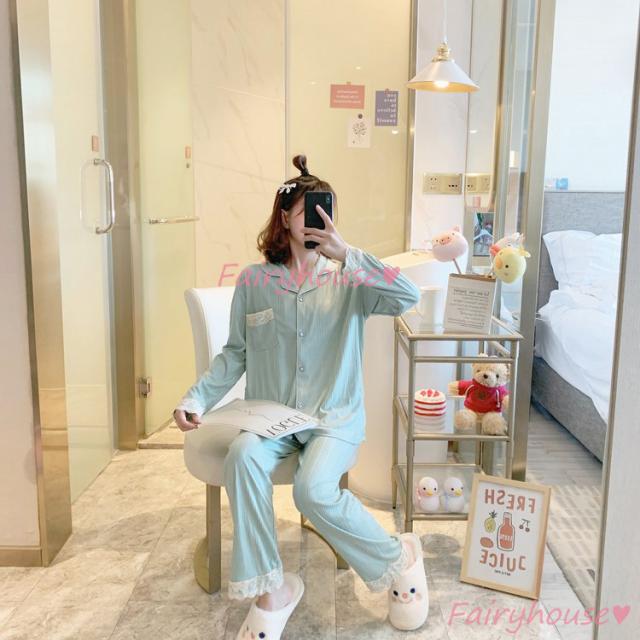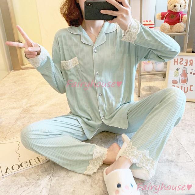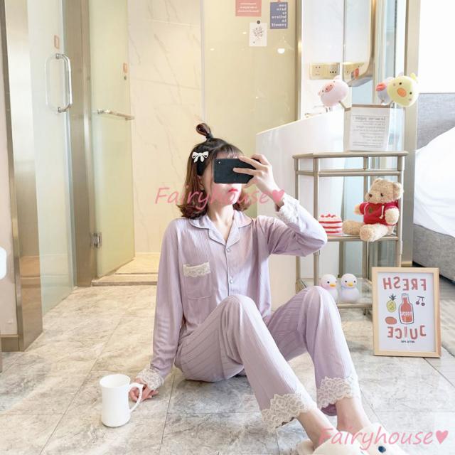 パジャマ ルームウェア レディース 秋冬 長袖パジャマ 可愛いルームウェア 前開き レース ロングパンツ上下セット パジャマ 女性 部屋着 大きいサイズ 快適