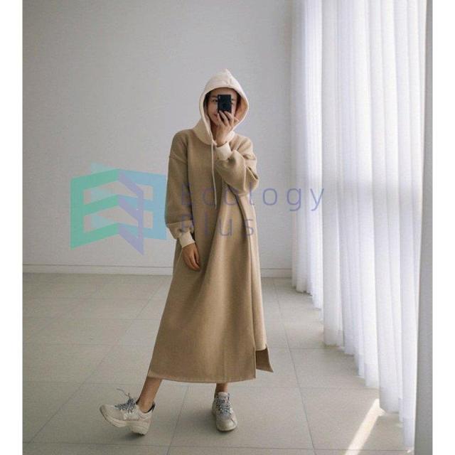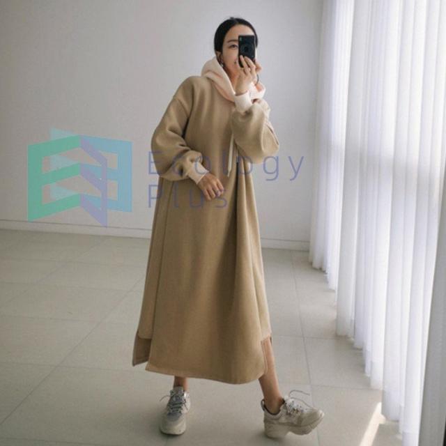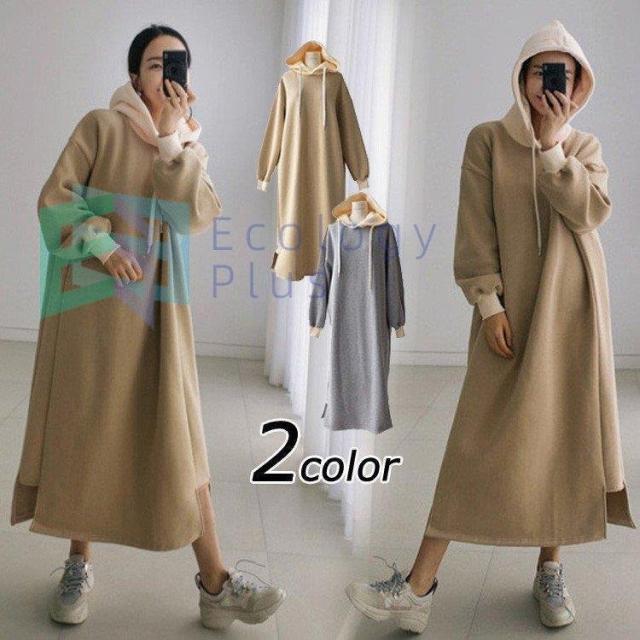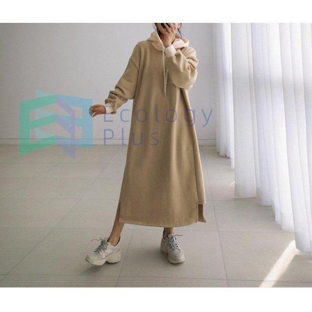 スウェットワンピース レディース 秋冬 ジャージ おしゃれ 長袖スウェットワンピース フード付き ロング丈 BF風 韓国風 スポーツカジュアル スウェット 新作