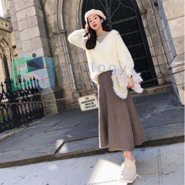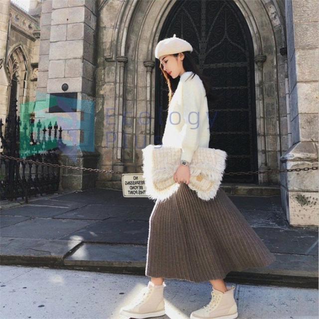 セットアップ レディース 秋冬 プリーツ スカートきれいめ 2点セット 長袖 モコモコ メリヤス セーター ニットセット カジュアル 通勤 オシャレ