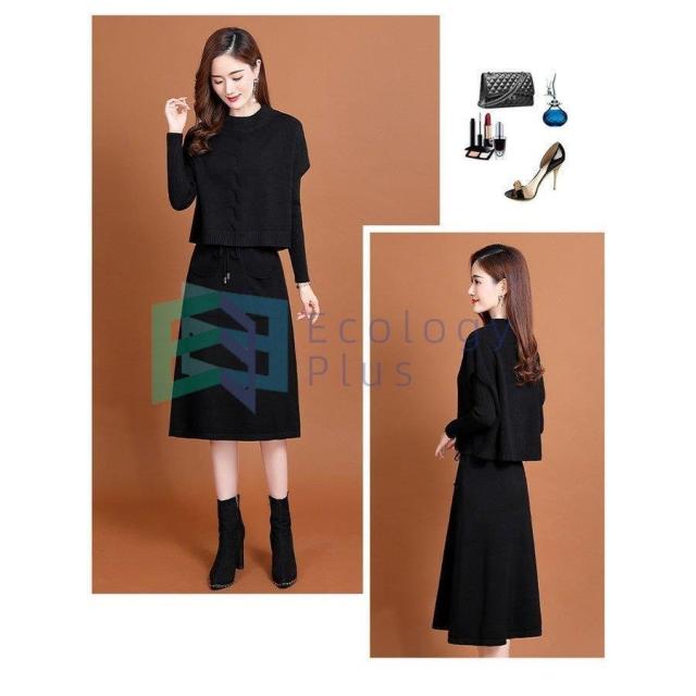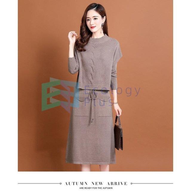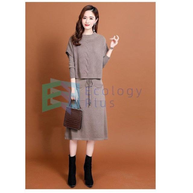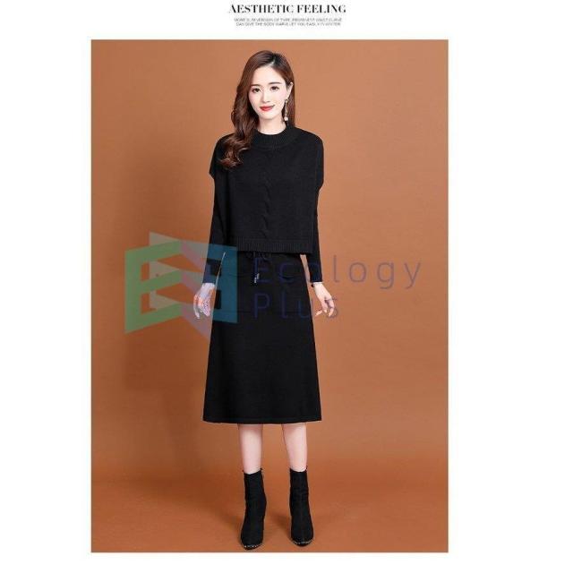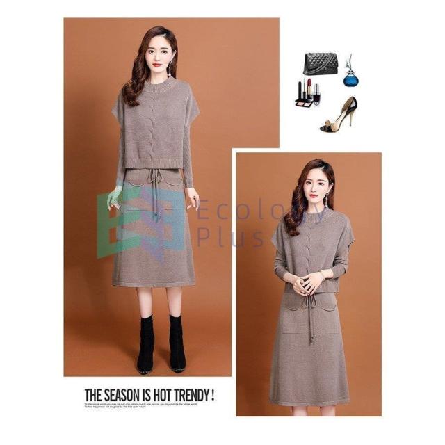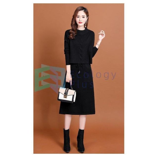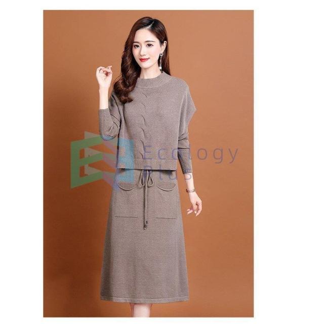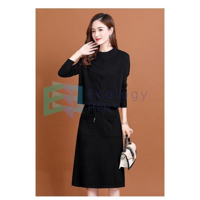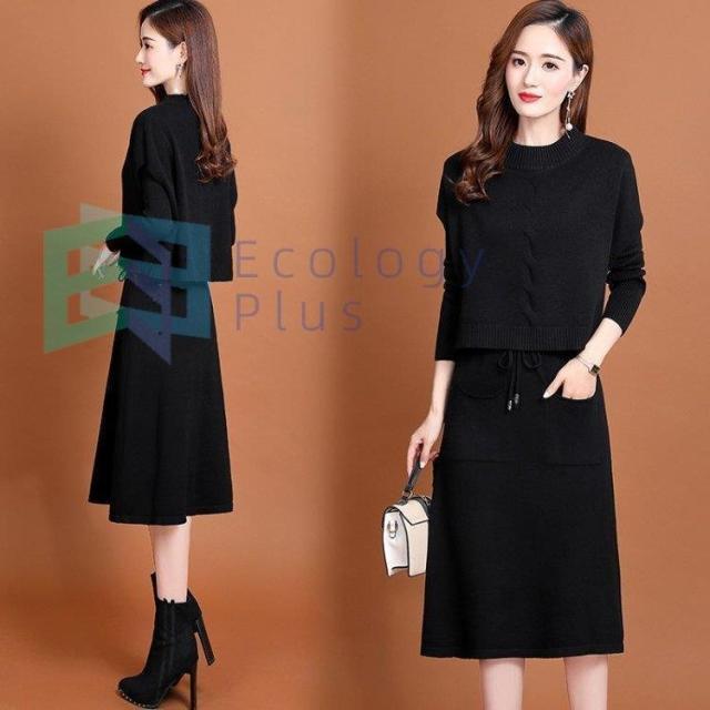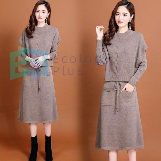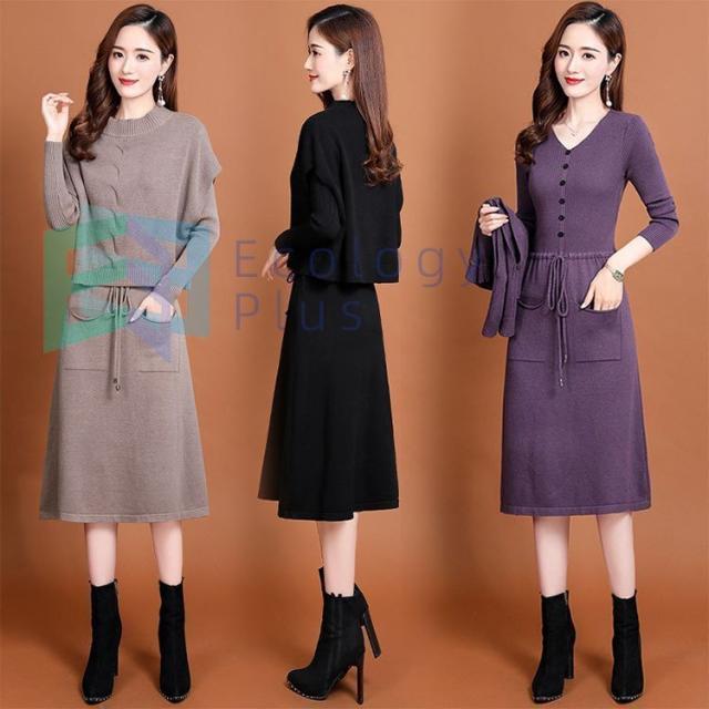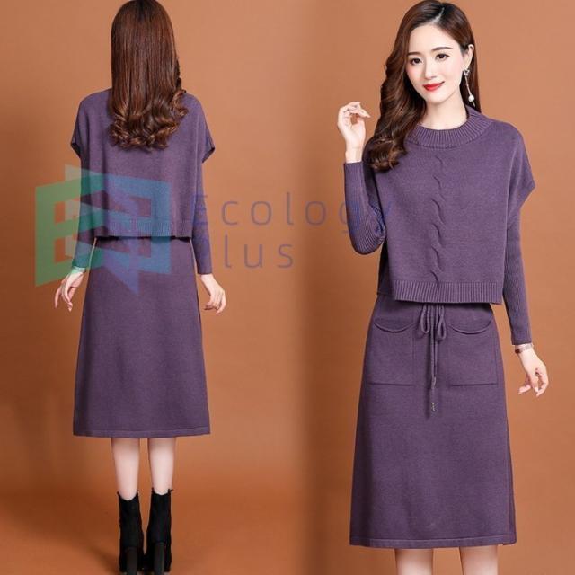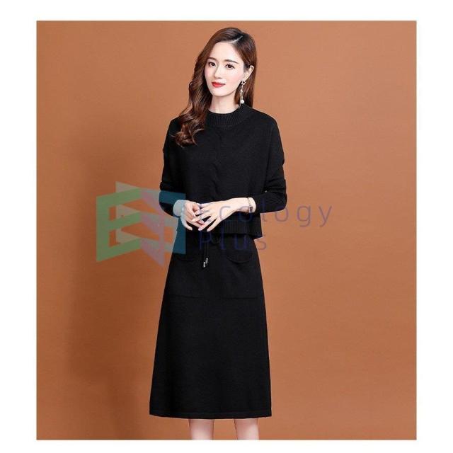 ニットワンピース セットアップ レディース 40代 秋冬 無地 タイトスカートセットアップ フリンジ 膝丈 きれいめ 長袖セーター 通勤 着痩せ オシャレ