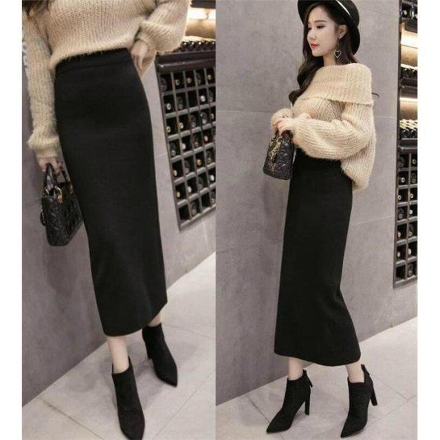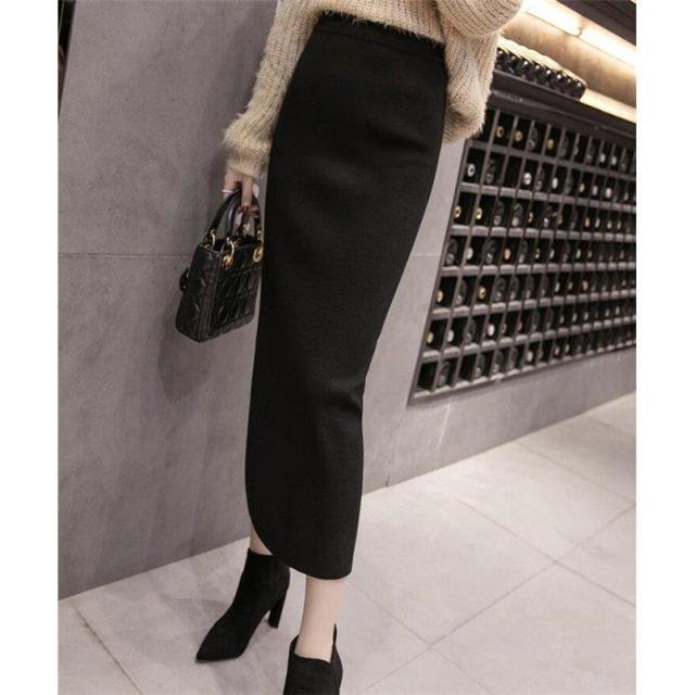 スカート レディース 秋 冬 ニット 体型カバー ロングスカート ハイウエスト