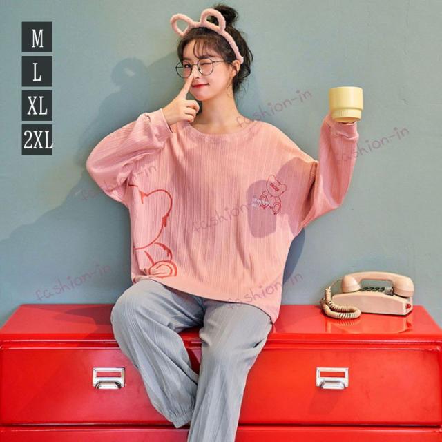 パジャマ ルームウェア レディース 秋 長袖 パジャマ 綿100% 大きいサイズ ロングパンツ 上下セット 可愛い パジャマ 女性 部屋着 韓国風 カジュアル ゆったり