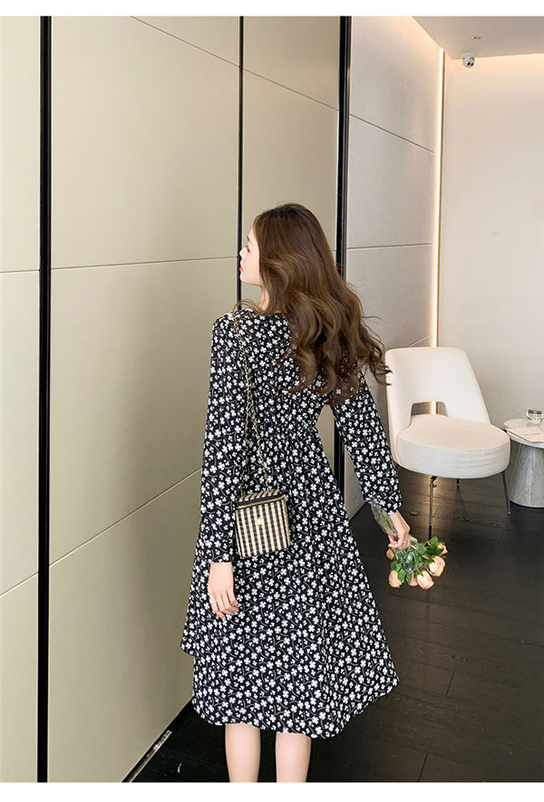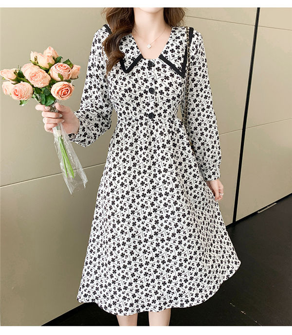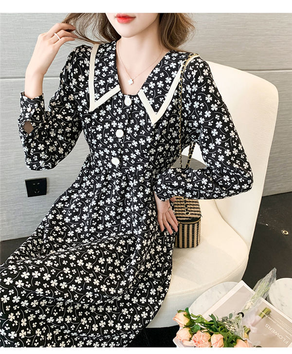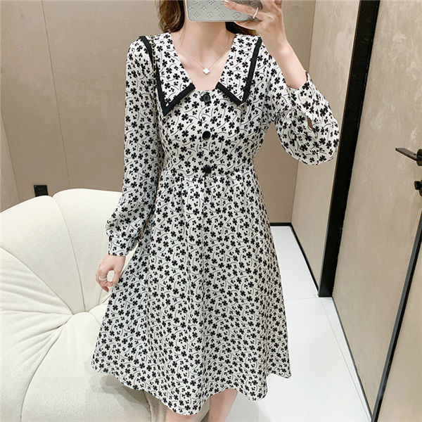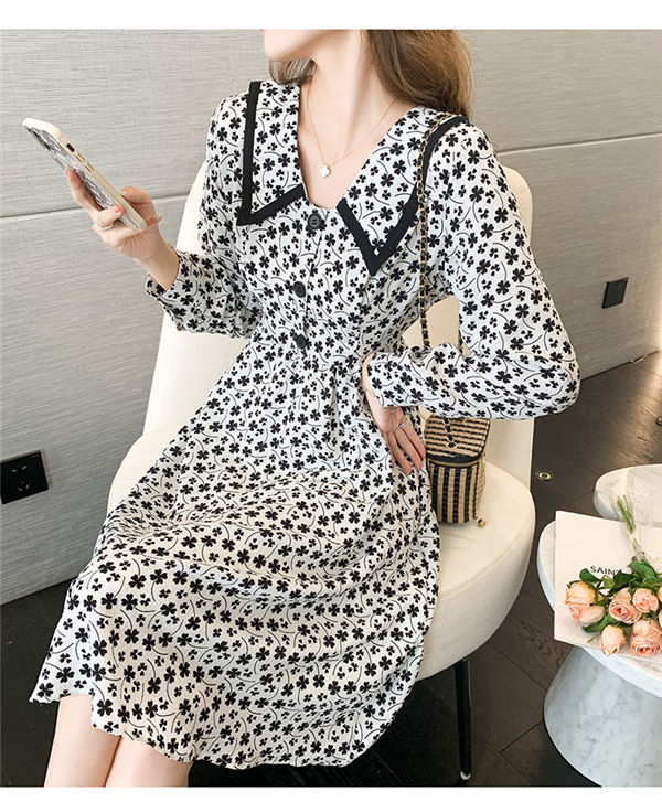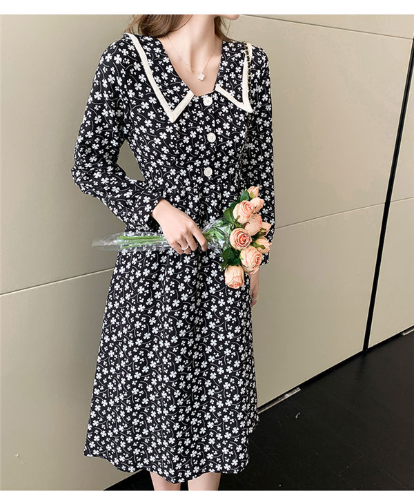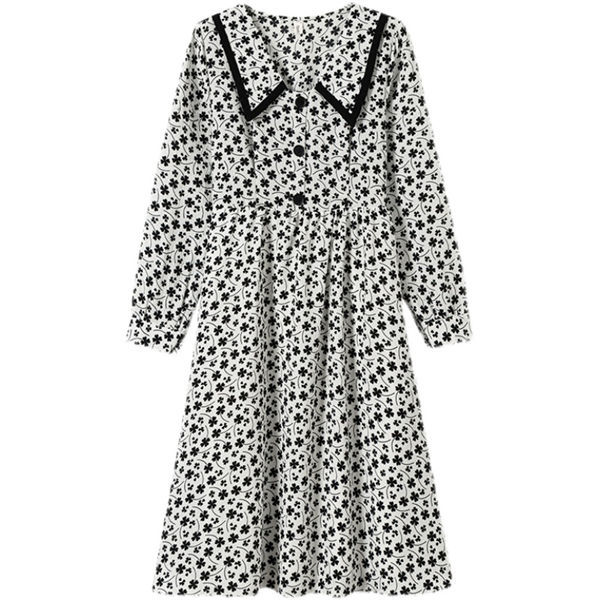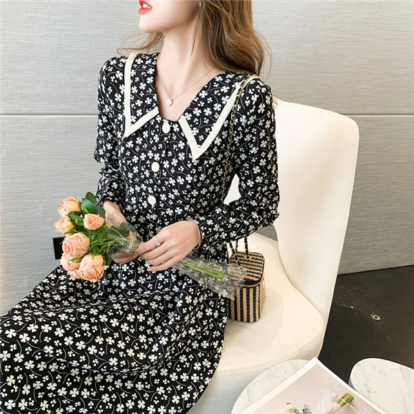 ワンピース レディース 長袖 ワンピース 花柄 襟付き ロングワンピ フラワー シフォンワンピ 可愛い オシャレ長袖 花柄ワンピース 秋物