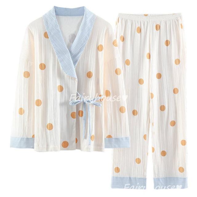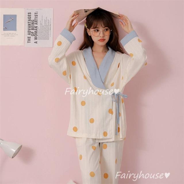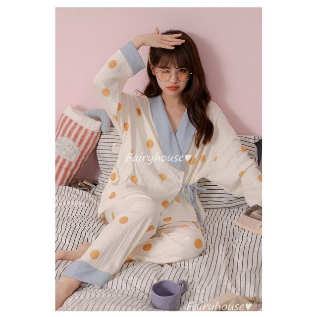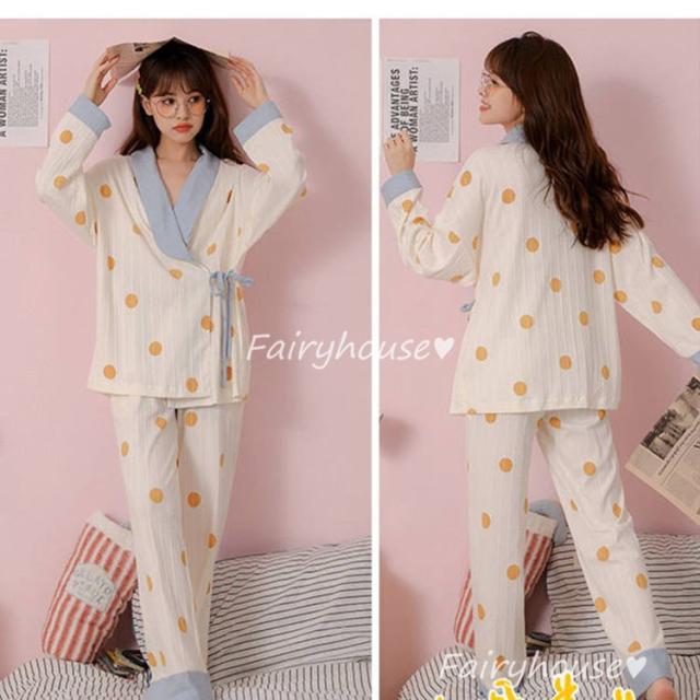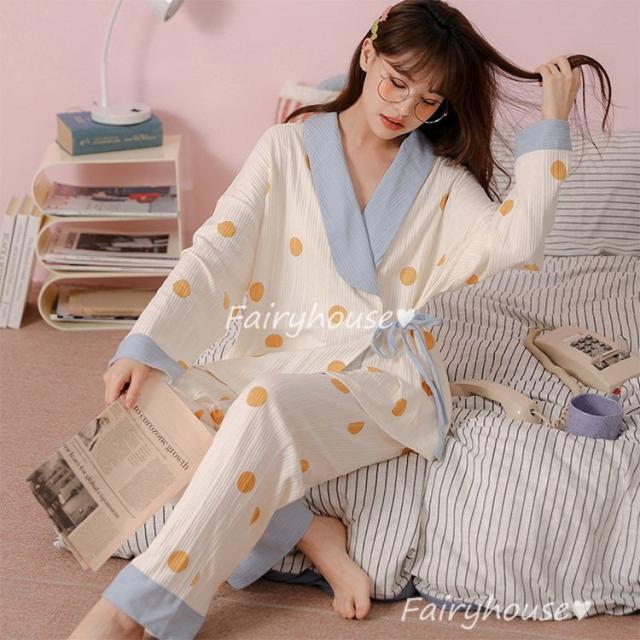 パジャマ ルームウェア レディース 綿 肌触りも良くドット柄パジャマ長袖 ロングパンツ ルームウェア 女性 可愛い 姫系 部屋着 寝巻き