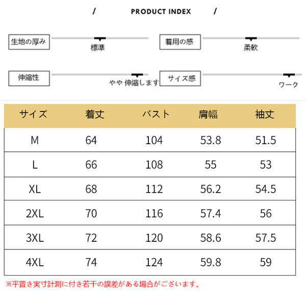 | サイズ | M L XL 2XL 3XL 4XL |