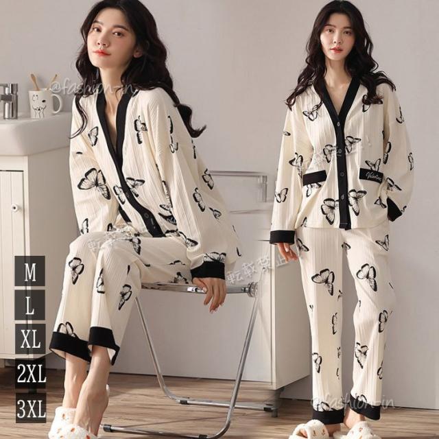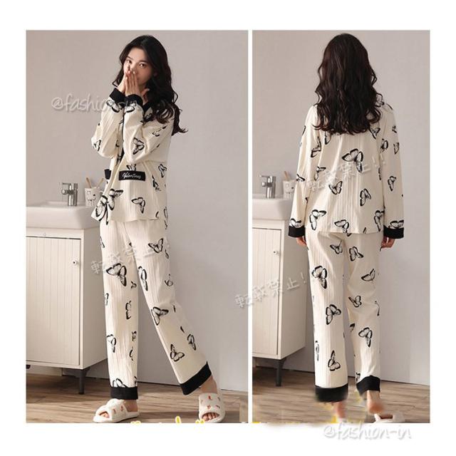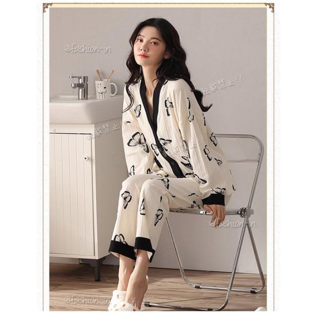 パジャマ ルームウェア レディース 秋 長袖パジャマ 綿100% ルームウェア 前開き ロングパンツ 上下セット 可愛い 女性 部屋着 寝間着 ゆったり