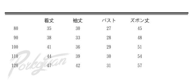 | サイズについての説明 | ■サイズ 80 着丈35 バスト27 袖丈30 パンツ丈45(股わりできます) 90 着丈38 バスト28 袖丈33 パンツ丈48(股わりできます) 100着丈41 バスト29 袖丈36 パンツ丈51 110着丈44 バスト30 袖丈39 パンツ丈54 120着丈47 バスト31 袖丈42 パンツ丈57 |