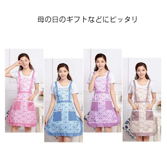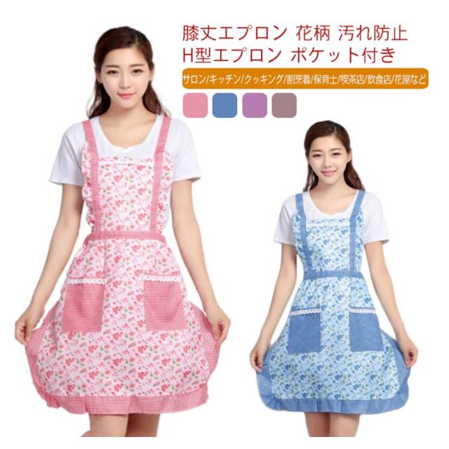 送料無料 エプロン H型エプロン ワンピースエプロン 汚れ防止 レディースエプロン 花柄 ワークエプロン 膝丈エプロン ソムリエエプロン ミドル ポケット付き サロン キッチン クッキング
