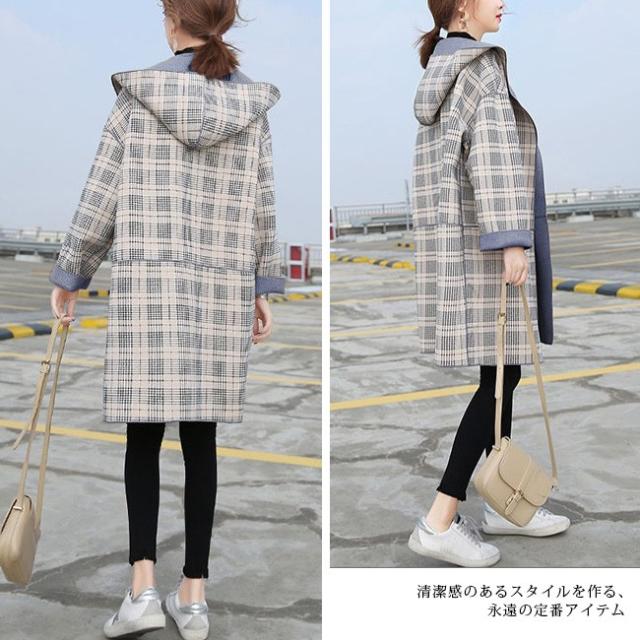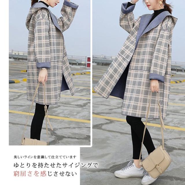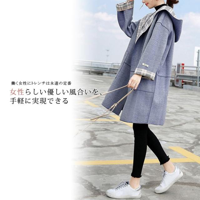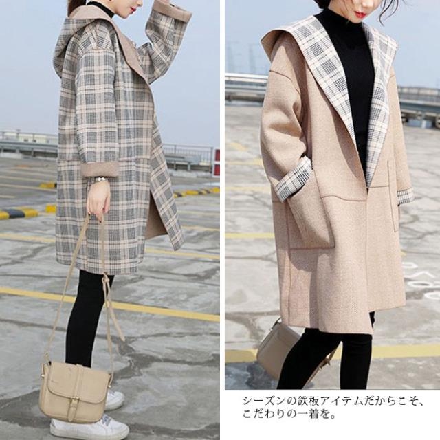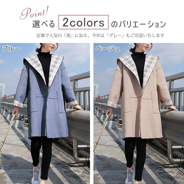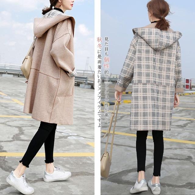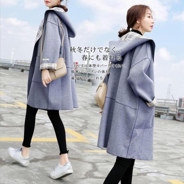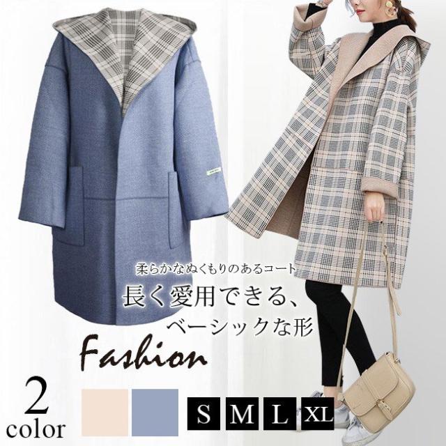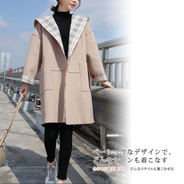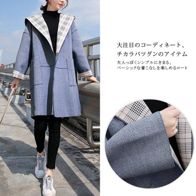 チェスターコート レディース ロング丈 リバーシブル シンプル フード付き 長袖 体型カバー ゆったり 秋冬コート OL 通勤 通学 オシャレ お洒落 大人 全2色