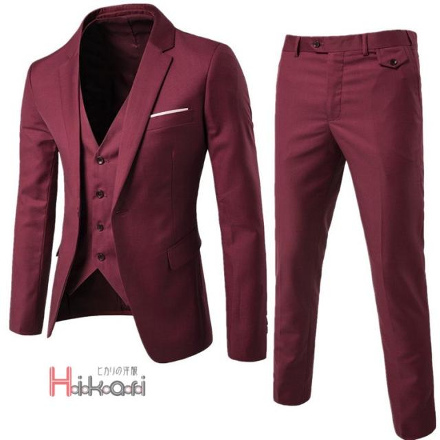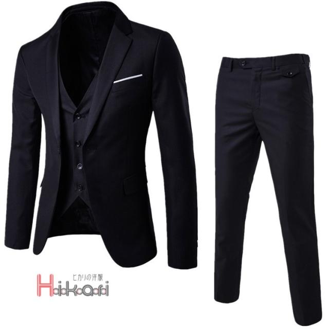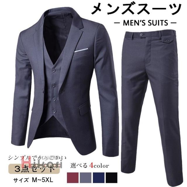 スリーピーススーツ セットアップ メンズ ビジネススーツ 結婚式 スーツセットアップ 3ピーススーツ 細身 通勤