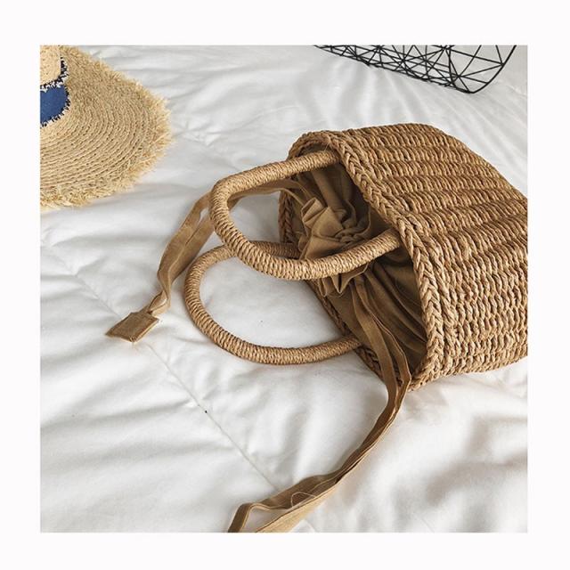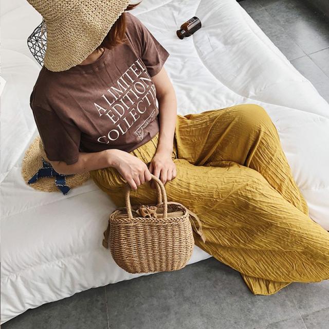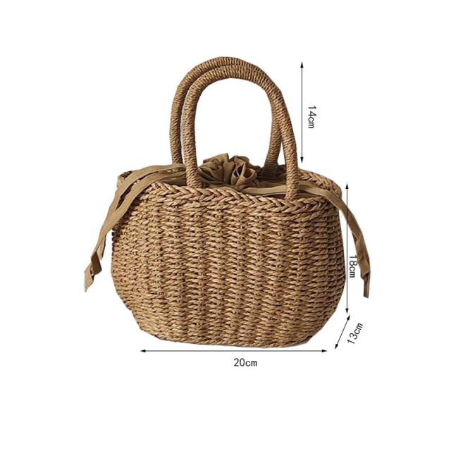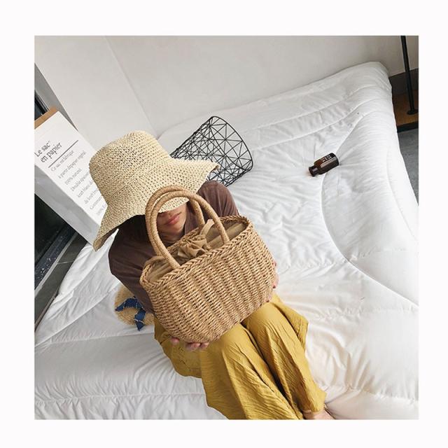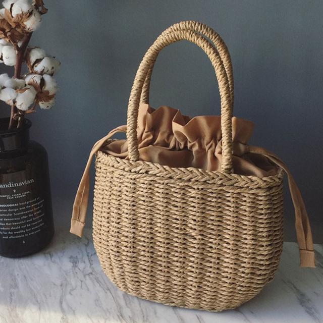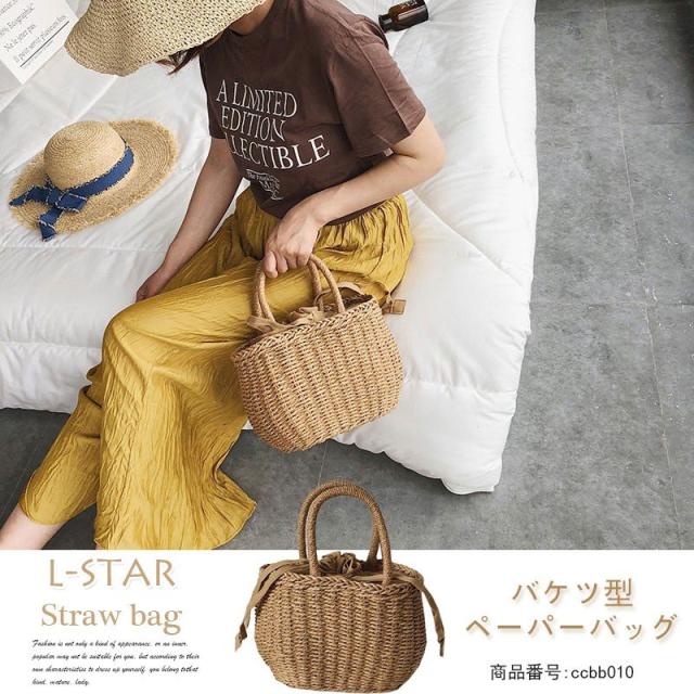 かごバッグ バケツ型 かごバッグ ハンドバッグ 小物 バケツ型ペーパーバッグ バケツ型 巾着付きかごバッグ 夏 巾着 小さめサイズ ナチュラル 手編み 軽い