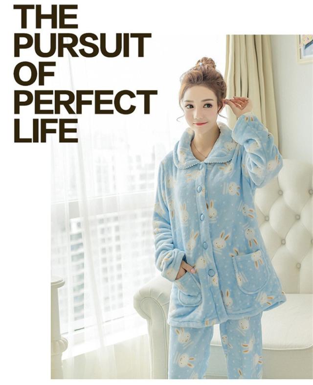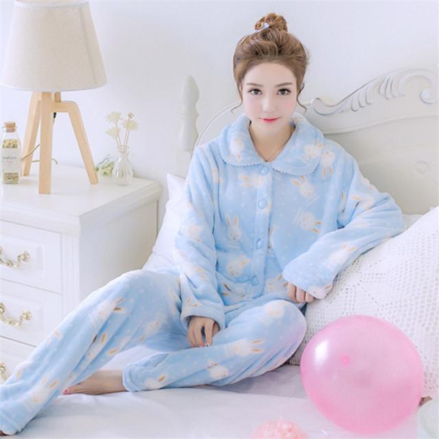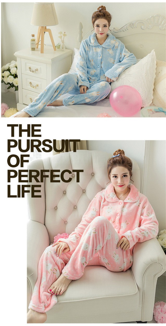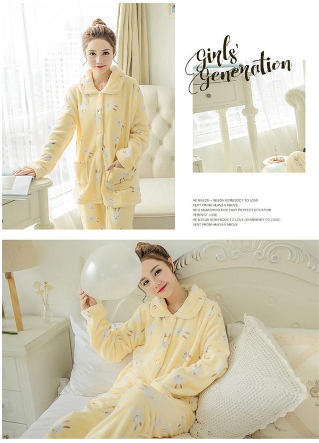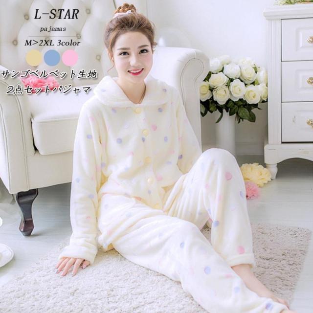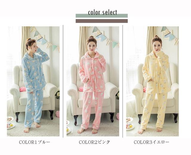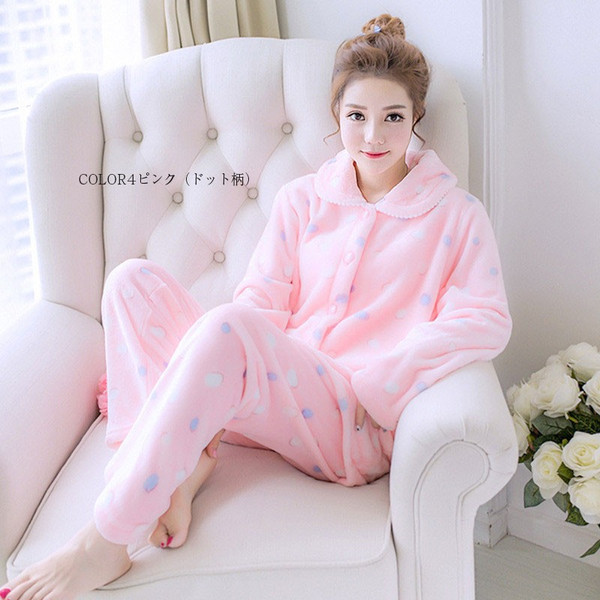 ルームウェア レディース 上下セット パジャマ もこもこ ふわふわ 厚手 ゆったり 前開き 可愛い 部屋着 長袖 長ズボン 女性 大人 寝巻き 秋 冬 兎柄 ドット柄