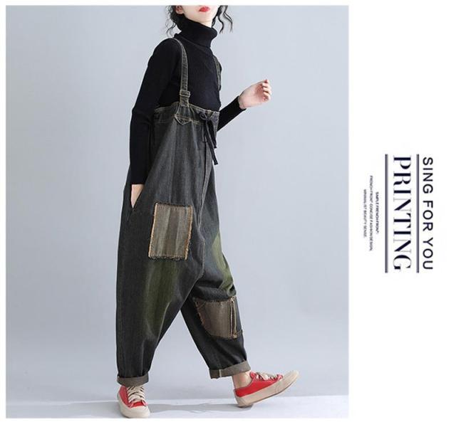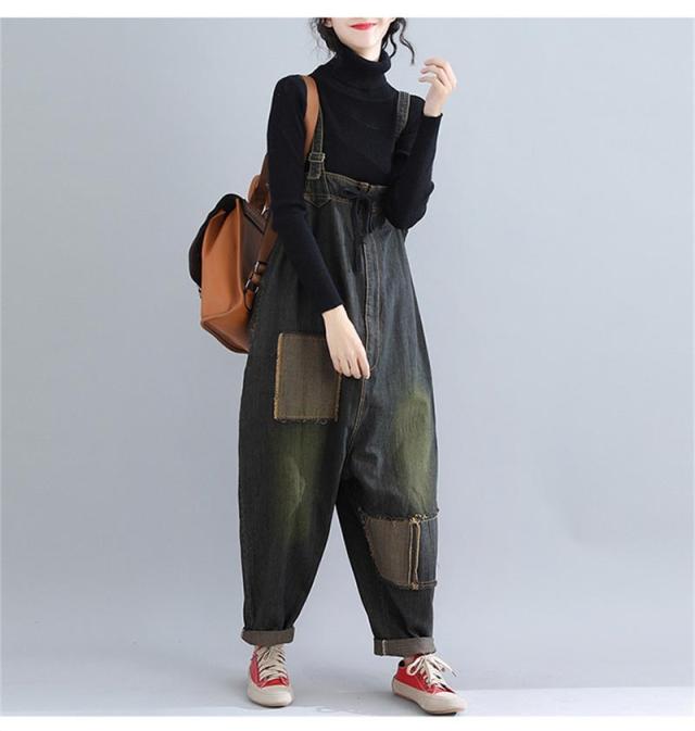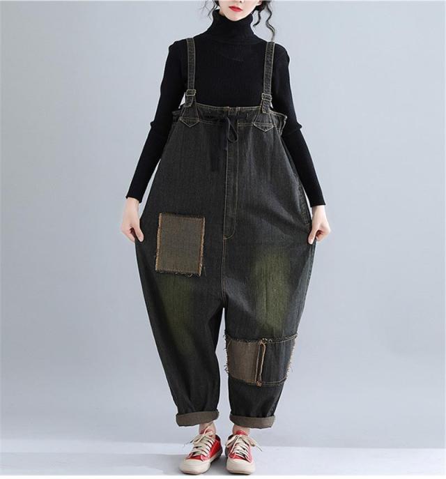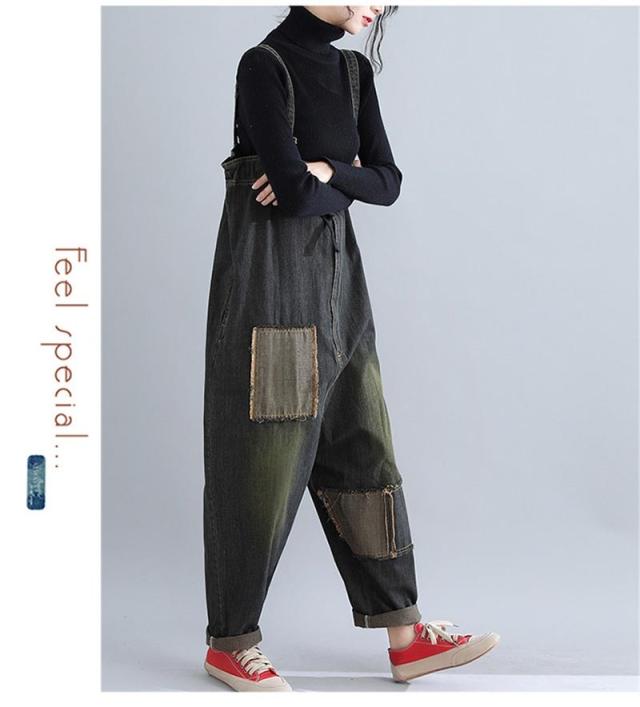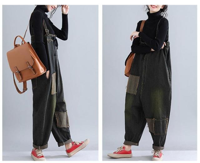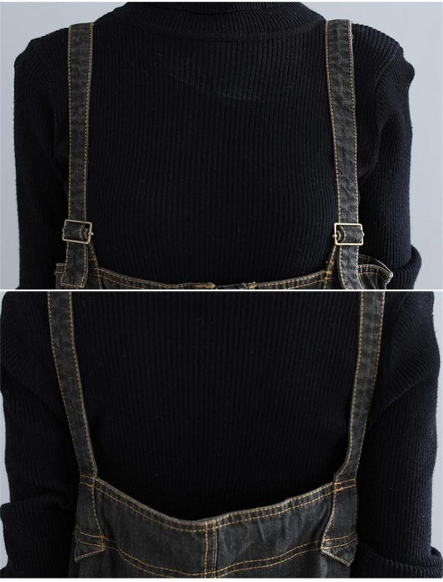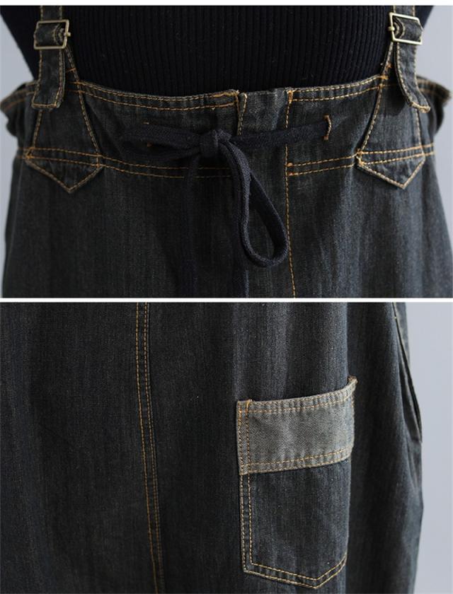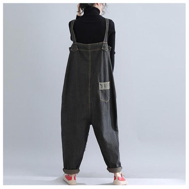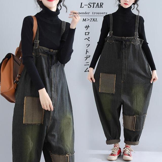 サロペットデニム パンツ レディース ゆったり オールインワン デニムパンツ ボトムス オーバーオール 大きいサイズ ブラック 40代 50代 秋 秋冬