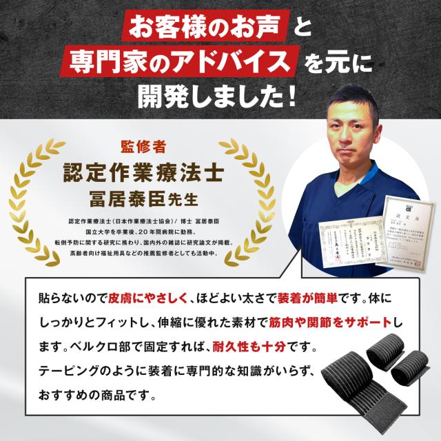 テーピングのように巻き付けてマジックテープで止めるだけで簡単装着