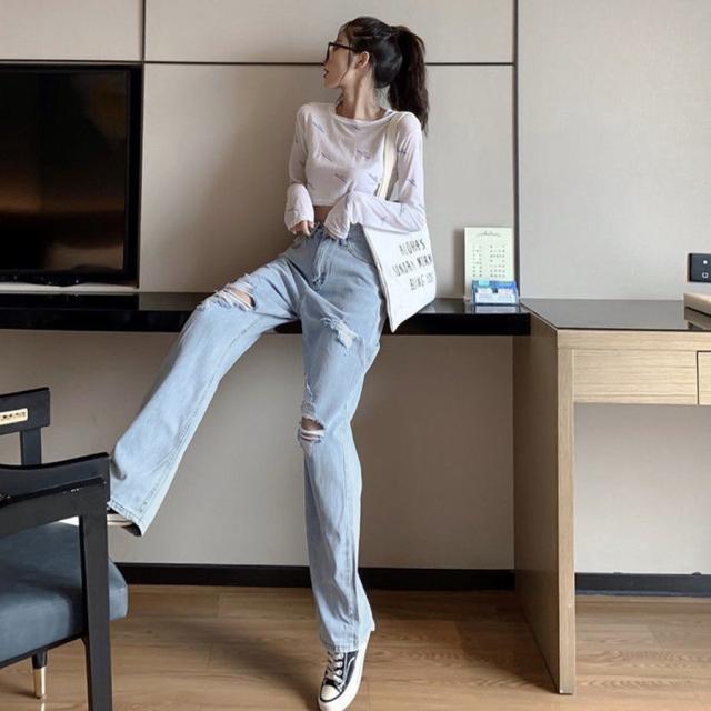 デニム スキニー レディース ジーパン タッセル ジーンズ 9分丈 春夏