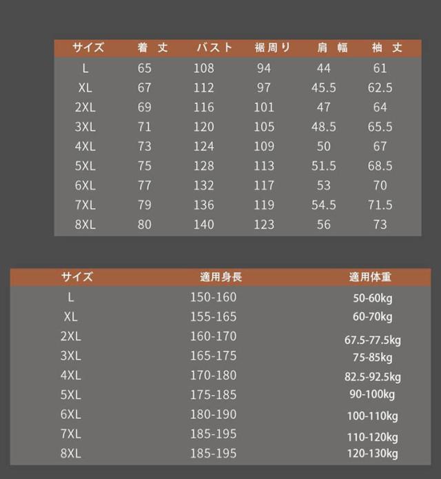 | サイズ | L XL 2XL 3XL 4XL 5XL 6XL 7XL 8XL |