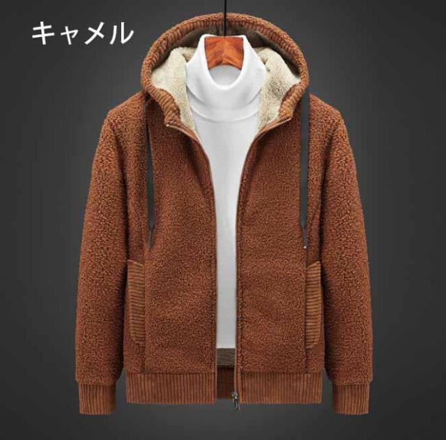 ボアジャケット メンズ フリース ビッグシルエット ジャケット フード付き ジャケット モコモコ コート パーカー ブルゾン 厚手 秋冬 高品質 暖かい
