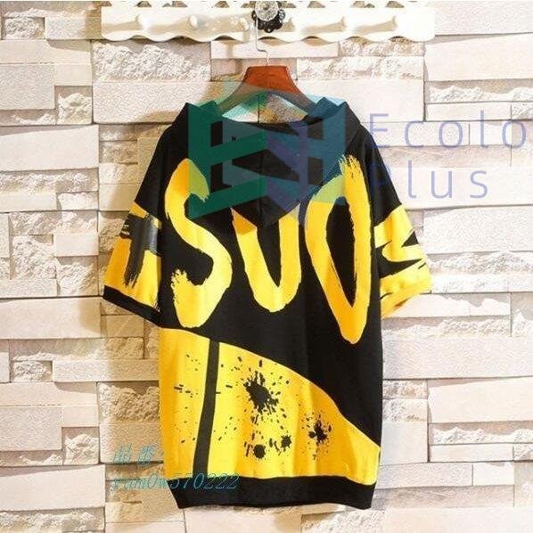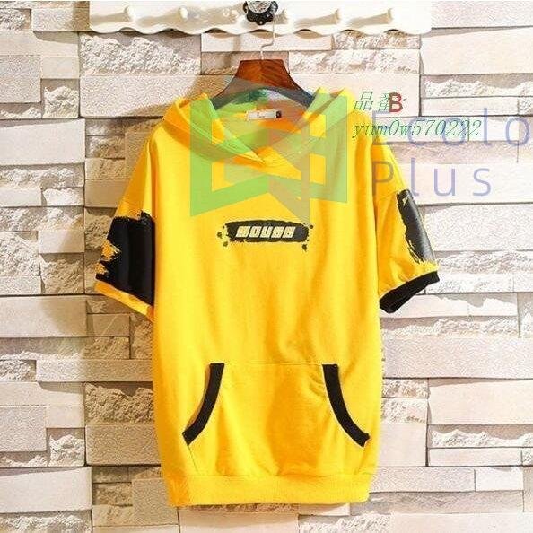 tシャツ 英字プリント トップス 半袖 20代30代 大きいサイズ パーカー フード付き カジュアル おしゃれ 服 半袖Tシャツ メンズ ファッション インナー メンズ