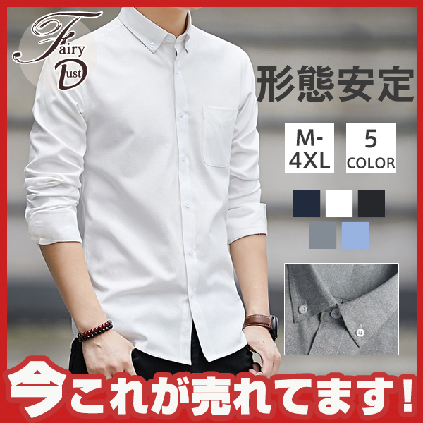 長袖ワイシャツ ボタンダウン クールビズ メンズ 春秋冬 紳士用 ワイシャツ カッターシャツ グレー Yシャツ ブロード 形態安定 通勤