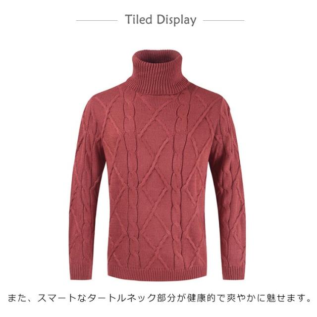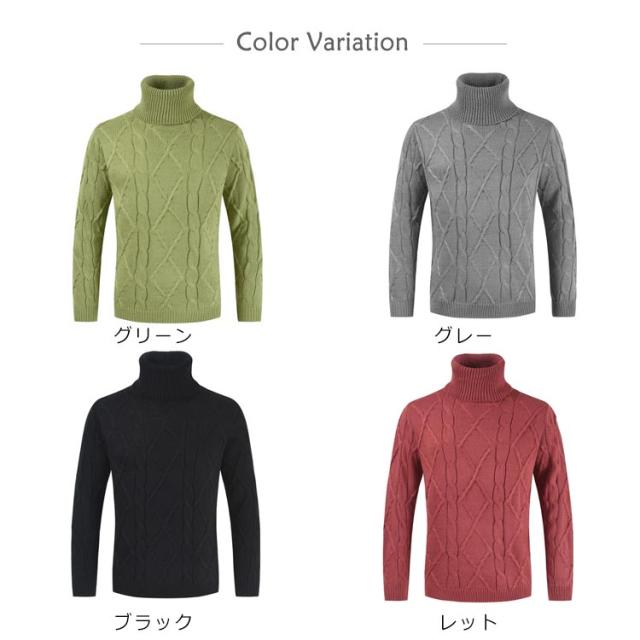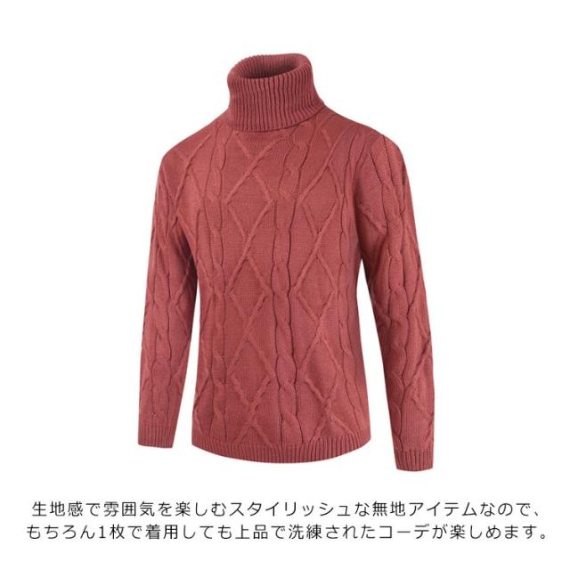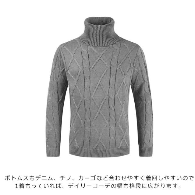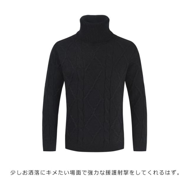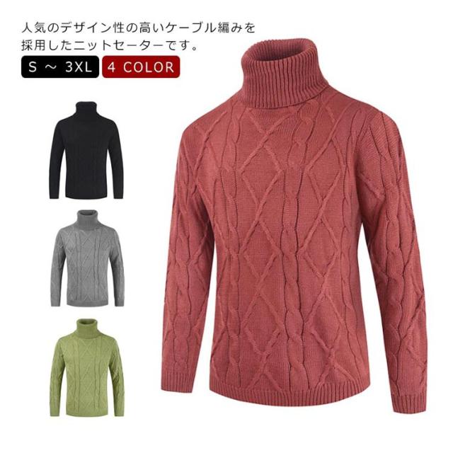 ケーブルニット ニット メンズ セーター リブ タートルネック コットンニット ソリッド ハイネック ケーブルニット ケーブル編み 無地 ミドルゲージ ニットセーター ボリュームネック Mens ニット タートルネック