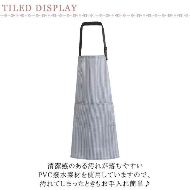 | 2つのポケットが付いているので、スマホやメモ帳など必要なものをサッと出し入れできます! 清潔感のある汚れが落ちやすいPVC撥水素材を使用していますので、汚れてしまったときもお手入れ簡単♪ 摩擦にも強くお洗濯の時に乾きが早いのもポイントです。 腰ひもは自由に結べるので、お好きなスタイルをお楽しみいただけます。 男女兼用可能なユニセックス着丈が長いので男性の方も着用可能できます。 | |