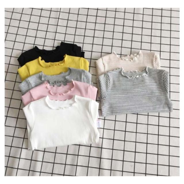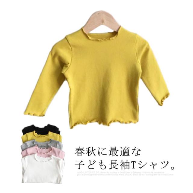 Tシャツ 長袖 キッズ 長袖tシャツ 女の子 トップス ベビー カットソー プルーオーバー インナーtシャツ 子供服 無地 ボーダー メロー 可愛い 送料無料 80cm 90cm 100cm 110cm 120cm 130