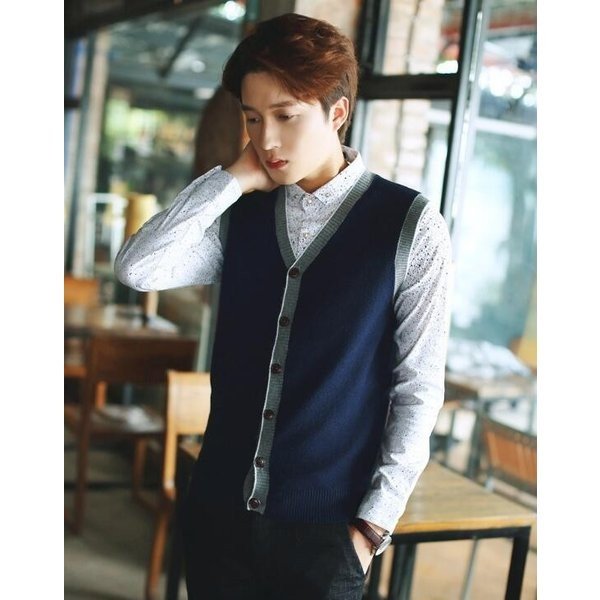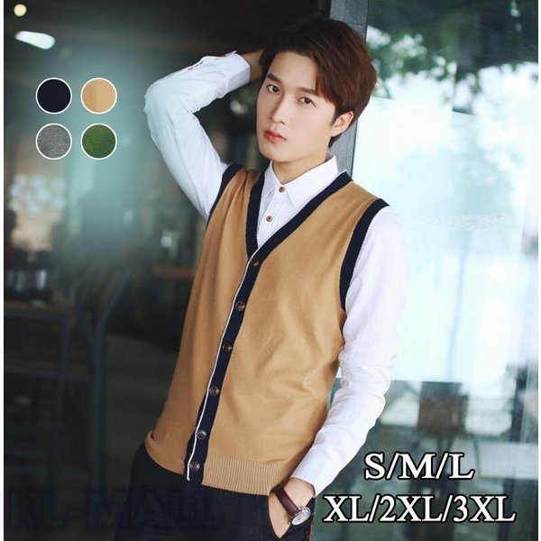 ニットベスト メンズ Vネック KL 前開きニットベスト カーディガン 大きいサイズ ビジネスベスト Vネックベスト 男性 オフィス
