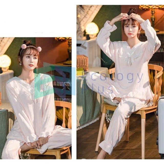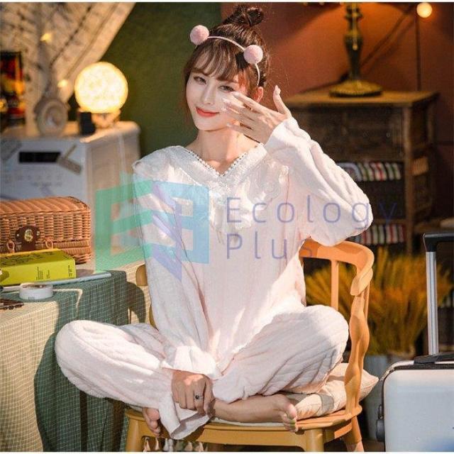 パジャマ ベロア レディース ルームウェア 長袖 部屋着 ベロア 上下セットアップ パジャマ レース 女性 大人 寝巻き 上下セット 秋 冬 暖かい vネック 可愛い