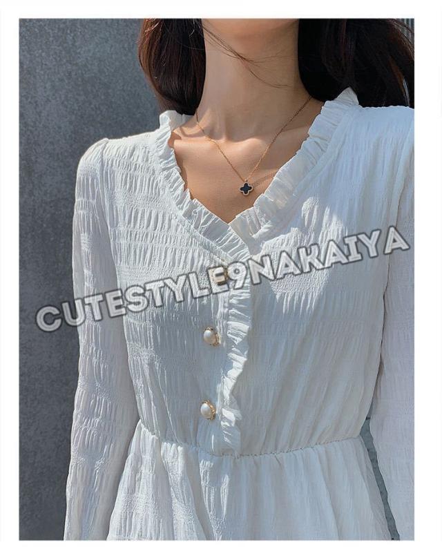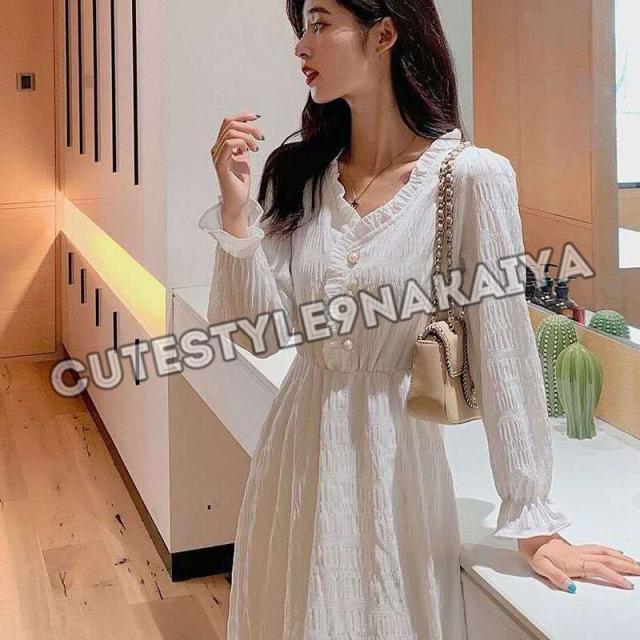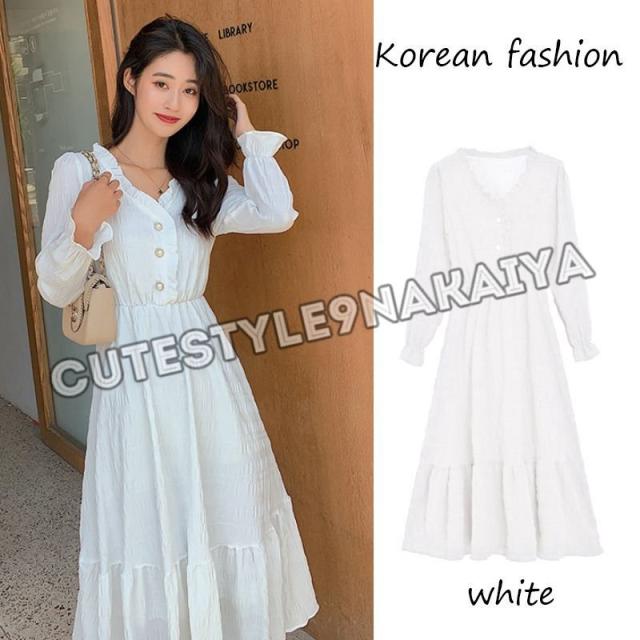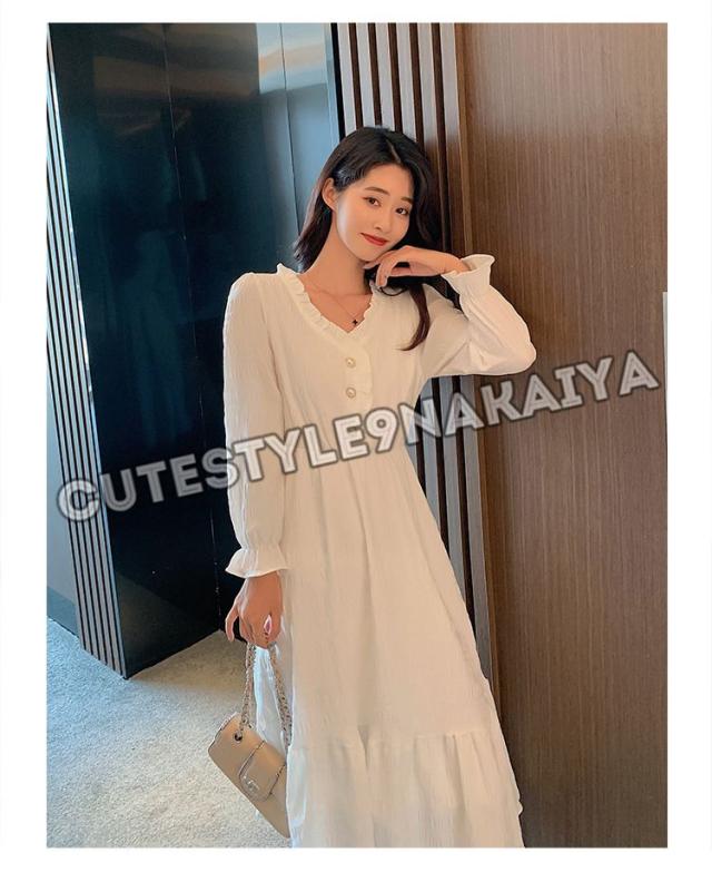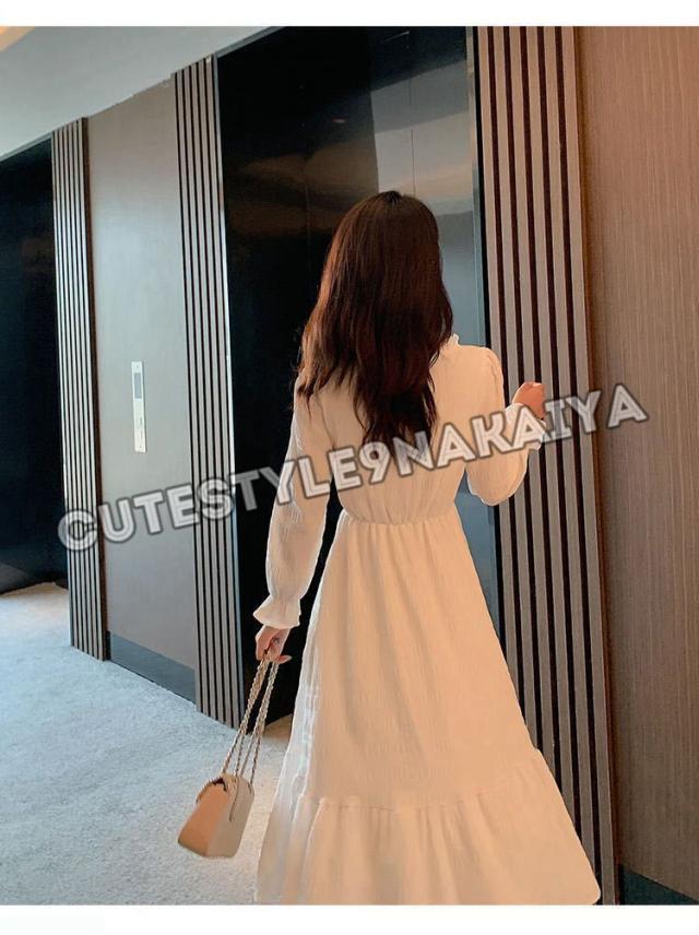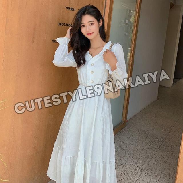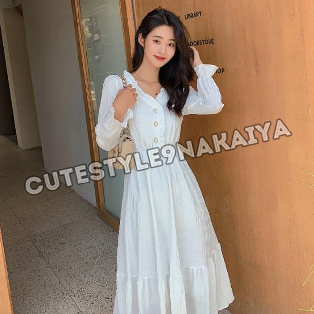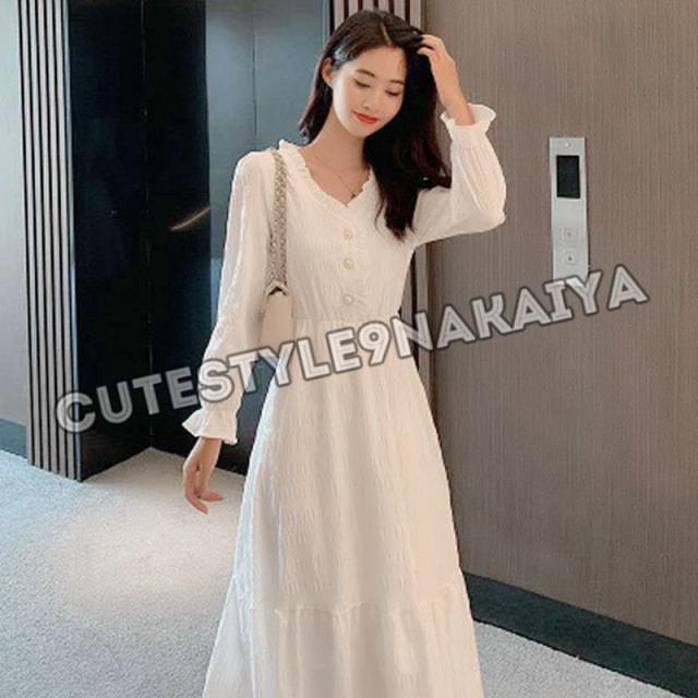 ワンピース トレンド 流行 ワンピ 秋 韓国ファッション 長袖 オシャレ カワイイ レトロ デート ロングワンピース 結婚式