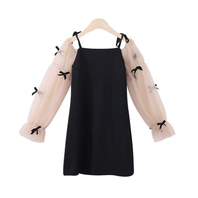 子供服 ワンピース 長袖 肩出し春秋 女の子 キッズワンピース ロングワンピース チュニック ジュニア おしゃれ 可愛い 薄手