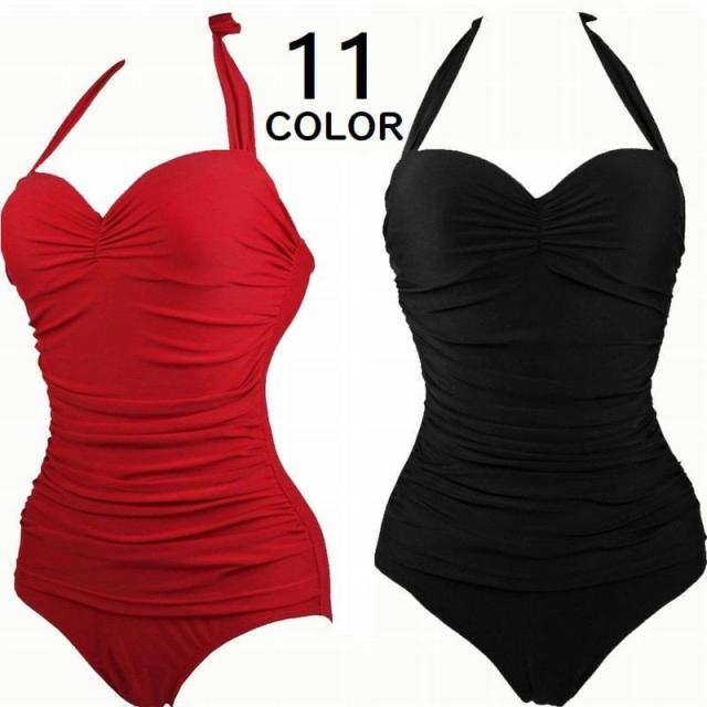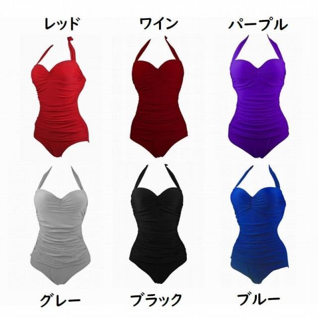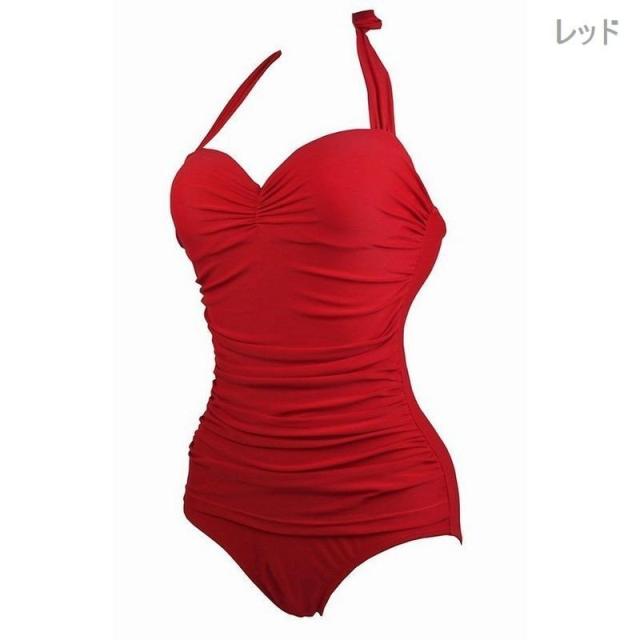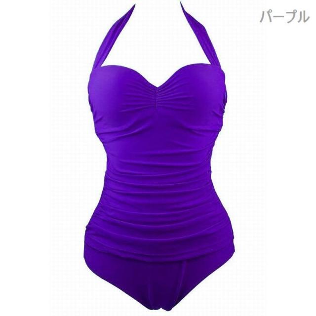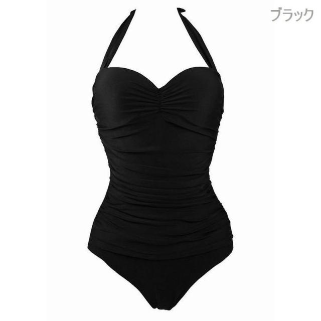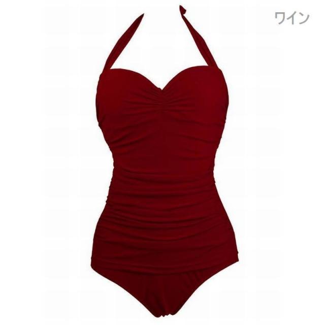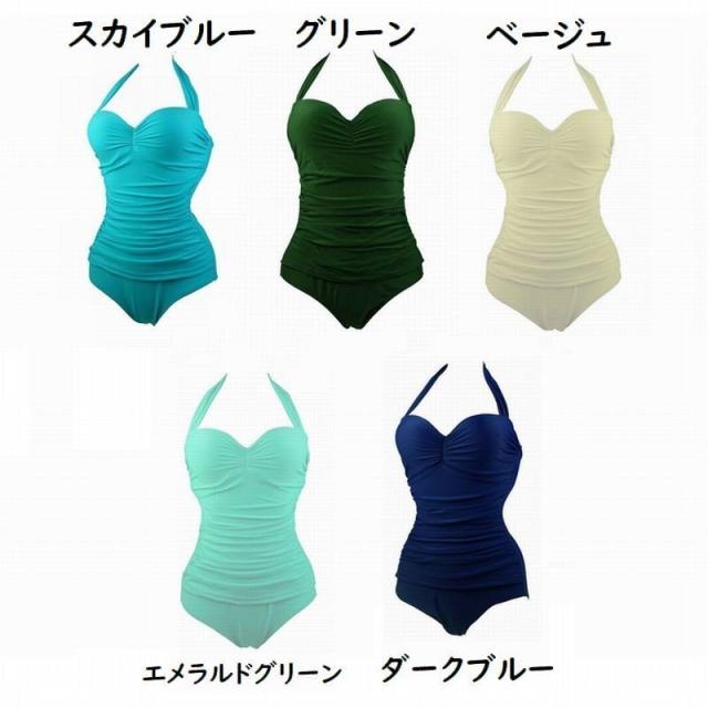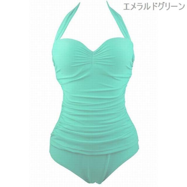 ワンピース水着 水着 ワンピース レディース 女性 ワンピースタイプ カップ付き 無地 シンプル ホルターネック ギャザー 海水浴 海 ビーチ プール