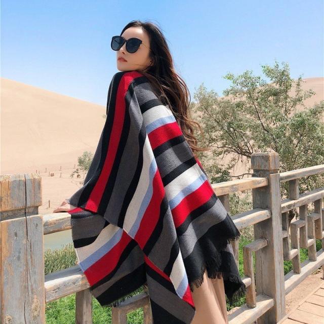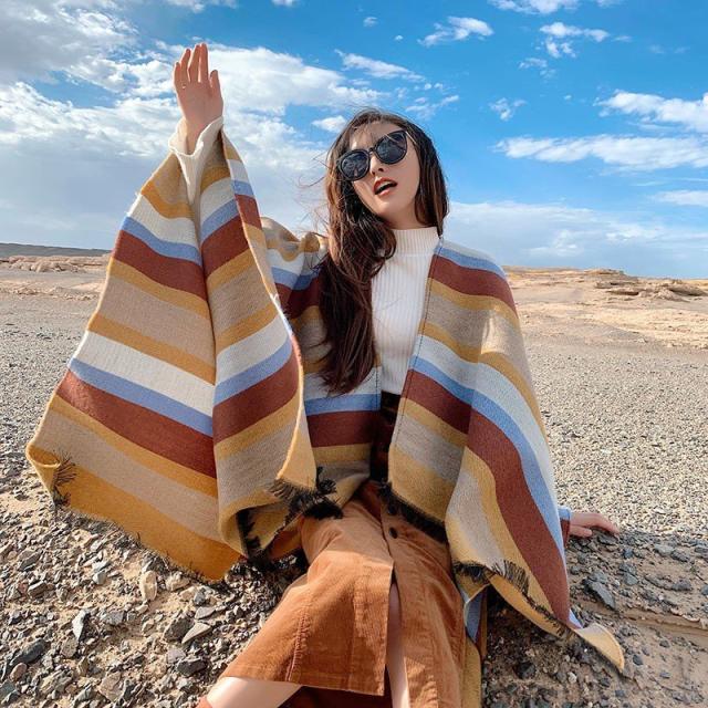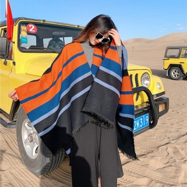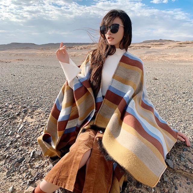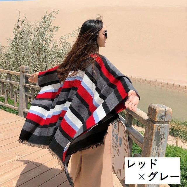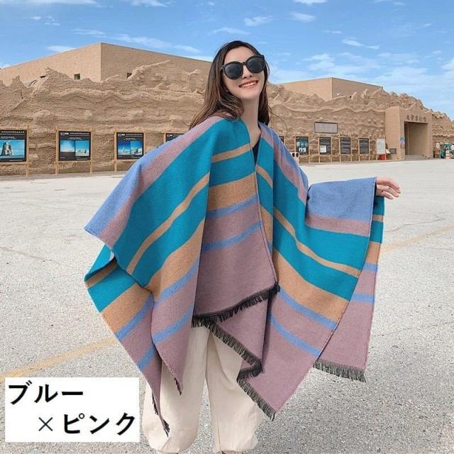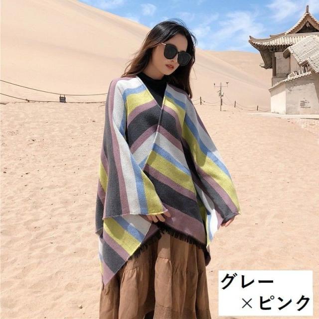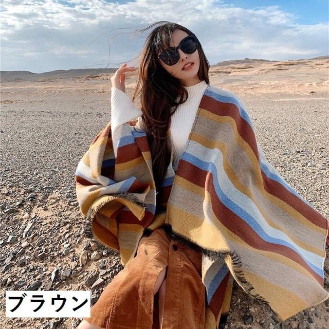 ストール ショール 大判 ひざ掛け 肩掛け 羽織もの マルチボーダー フリンジ付き レディース 服飾雑貨 ファッション小物 柄物 冷え性対策 防寒 寒