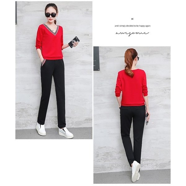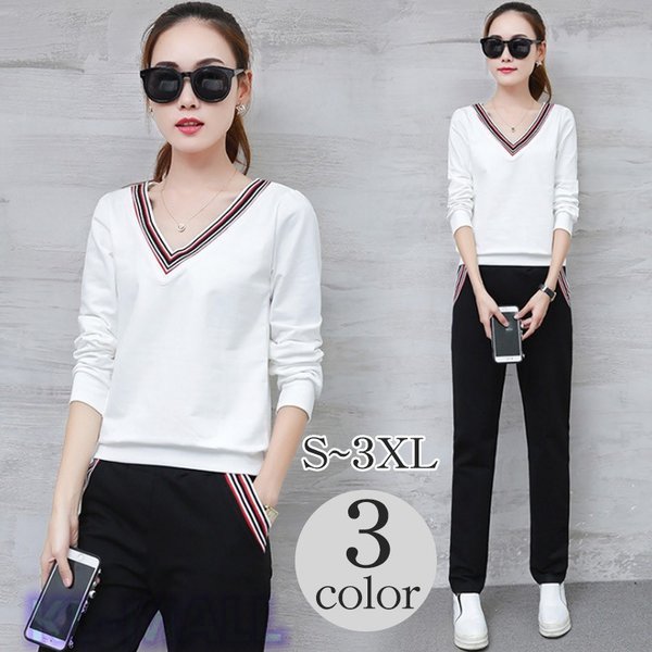 レディース ジャージ 上下セット KL ゴルフウェア スポーツウェア セットアップ スウェット運動服 スポーツ カジュアル Vネック ライン入り