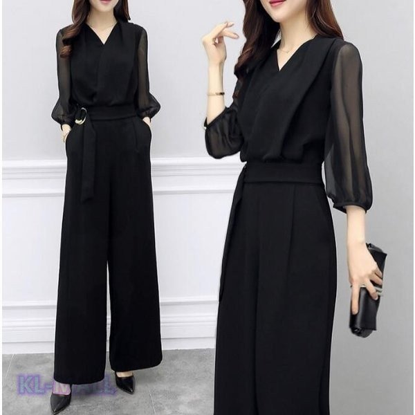 レディース オールインワン シフォン KL パンツドレス 結婚式 大きいサイズ 体型カバー セットアップ ガウチョパンツ 通勤 二次会