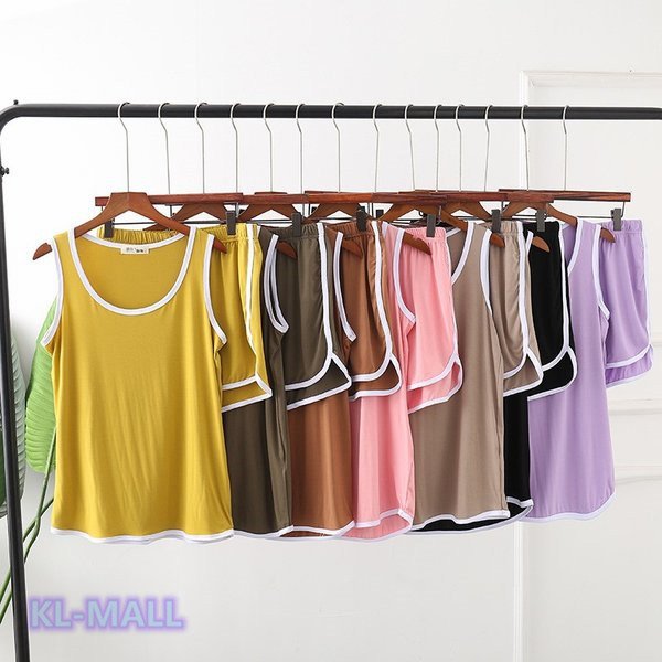 タンクトップ 上下セット レディース KL トップス ノースリーブ ボトムス ショートパンツ無地 部屋着 肌着 下着 ルームウェア イ