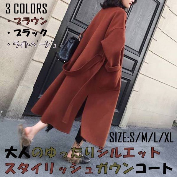 コート レディース ガウンコート オーバーコート 大人 上品 無地 スタイリッシュ ロングコート