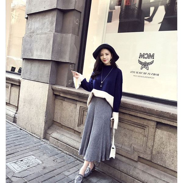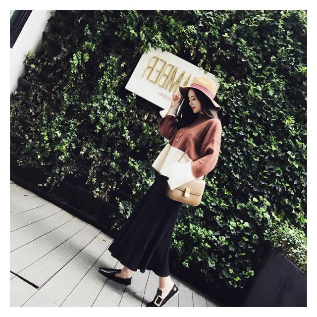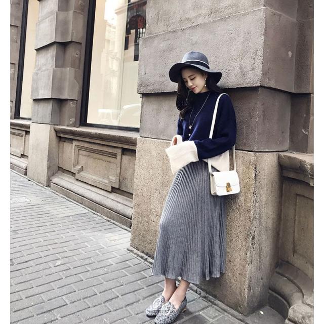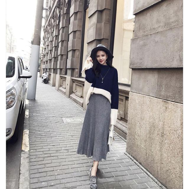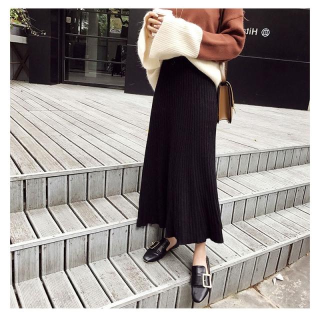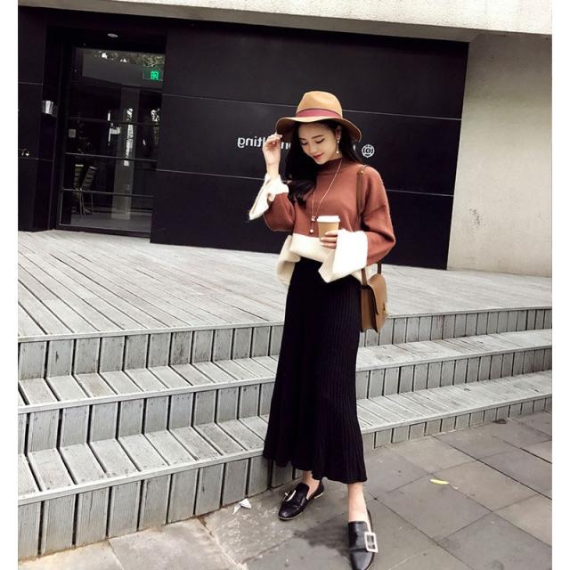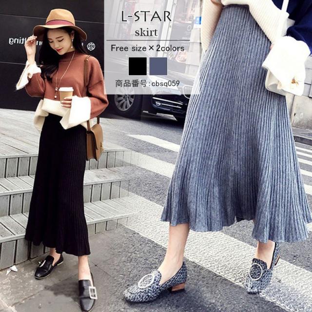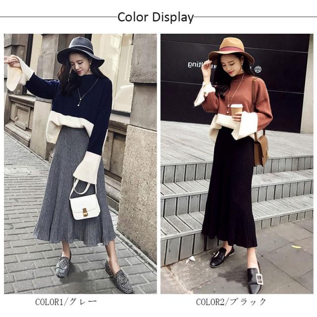 ニットスカート ロング レディース ミモレ丈 ウエストゴム 体型カバー フレアスカート スカート ギャザー ボトムス リブニット 春 春 コーデ 30代 40代