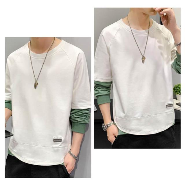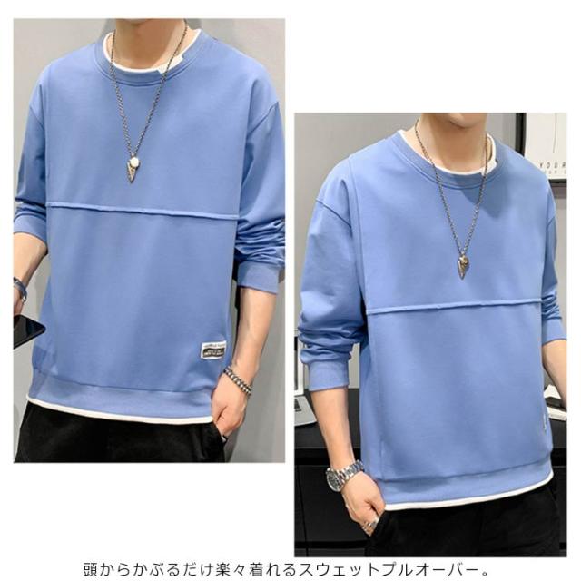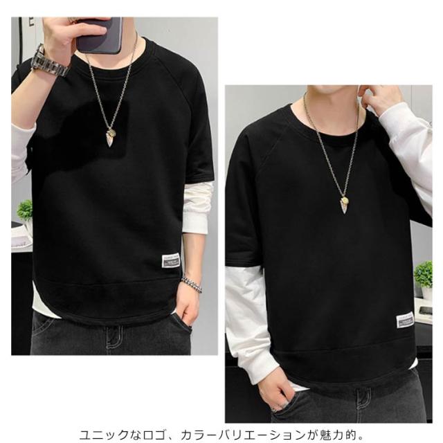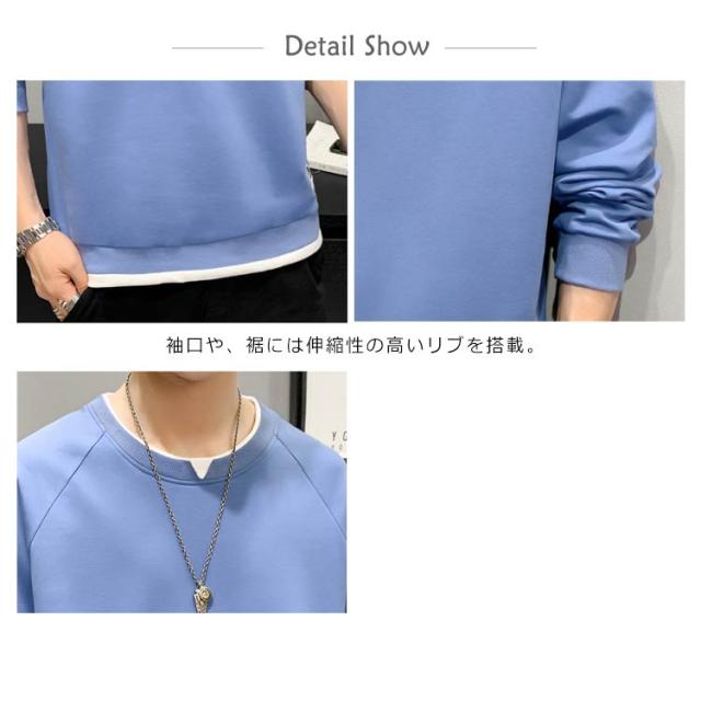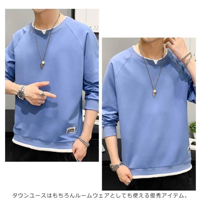 スウェット トレーナー メンズ 無地 春秋 レイヤード 大きいサイズ 赤 黒 おしゃれ メンズトレーナー 重ね着 春服 秋服 無地トレーナー スエット 秋服 トップス メンズスウェット