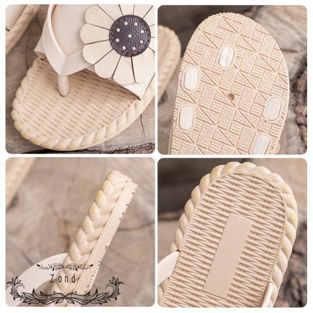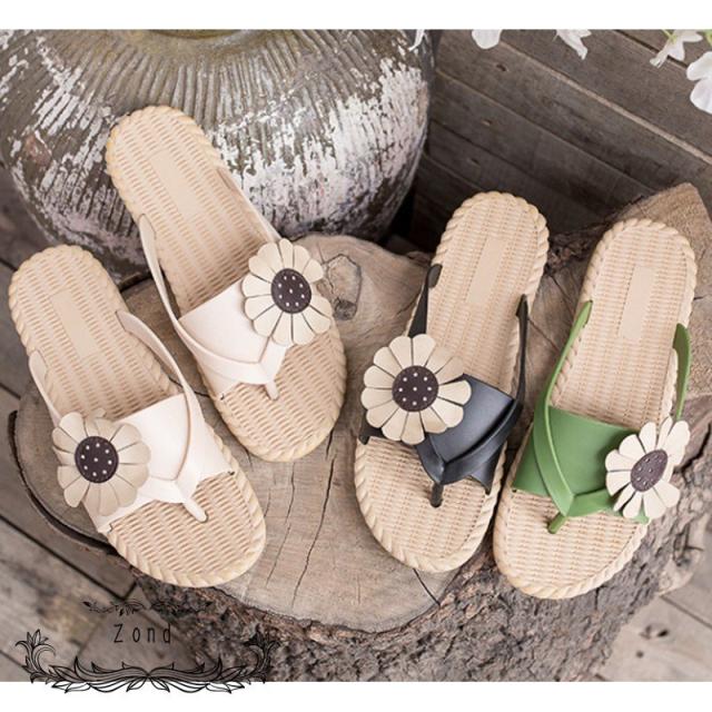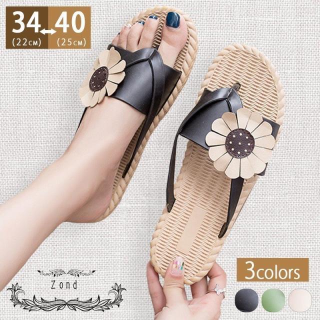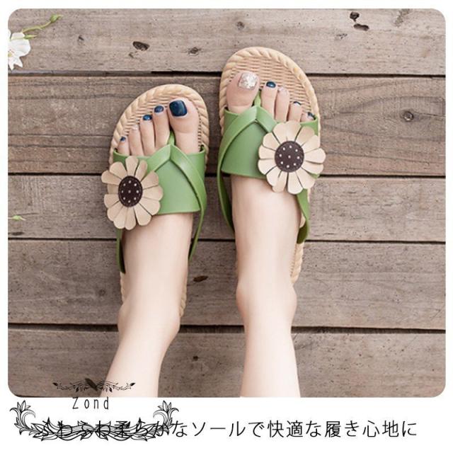 サンダル レディース フラットサンダル 花飾り スリッパ フラワー 花 ぺたんこ ローヒール 歩きやすい カジュアル お洒落 靴 シューズ