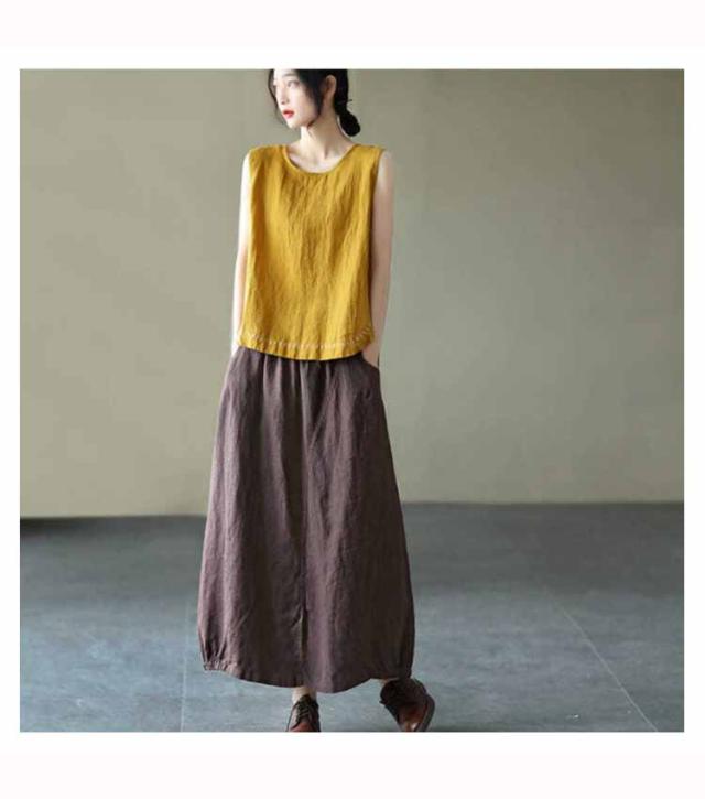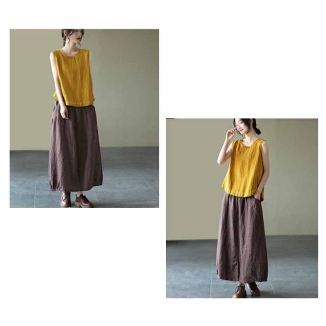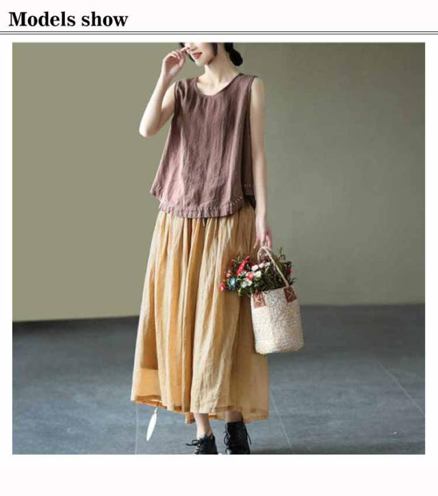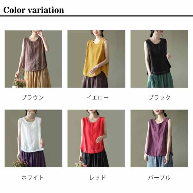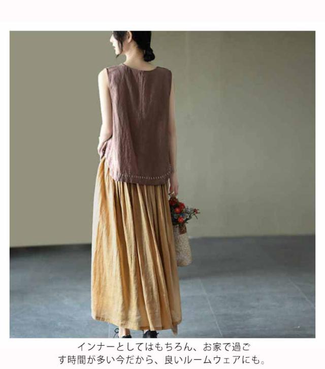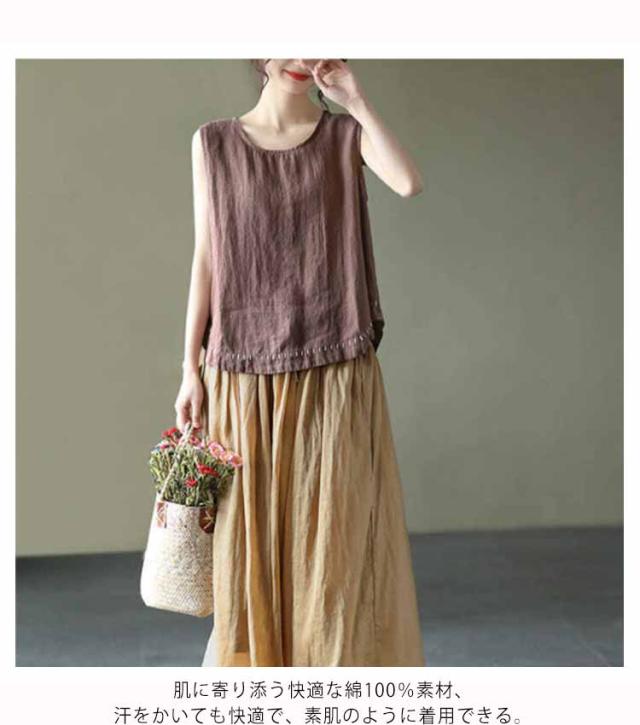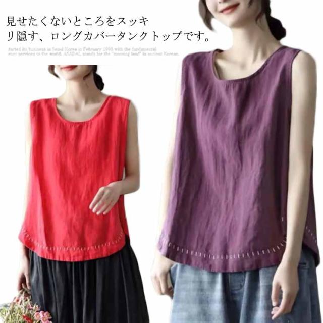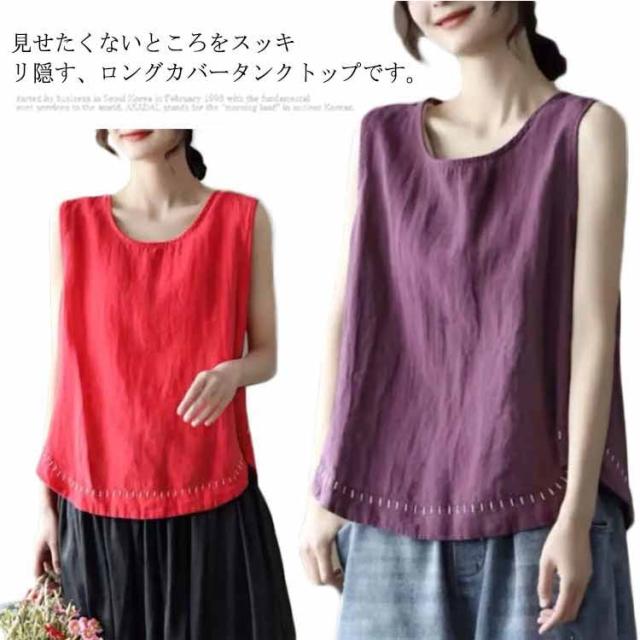タンクトップ 綿100 レディース ラウンドネック ロング丈 カジュアル カバー ロングタンクトップ 刺? ナチュラル ブラウン イエロー ブラック ホワイト レッド パープル 送料無料